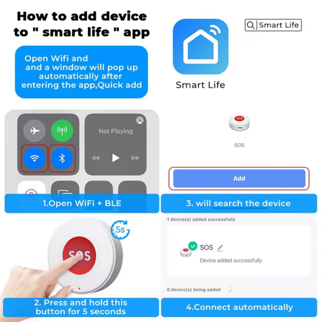 ผลิตภัณฑ์นี้เป็นปุ่มฉุกเฉิน WiFI SOS ทำงานร่วมกับแอพ "Tuya smart"