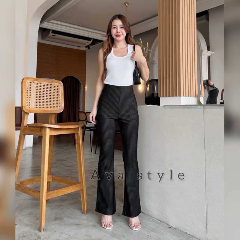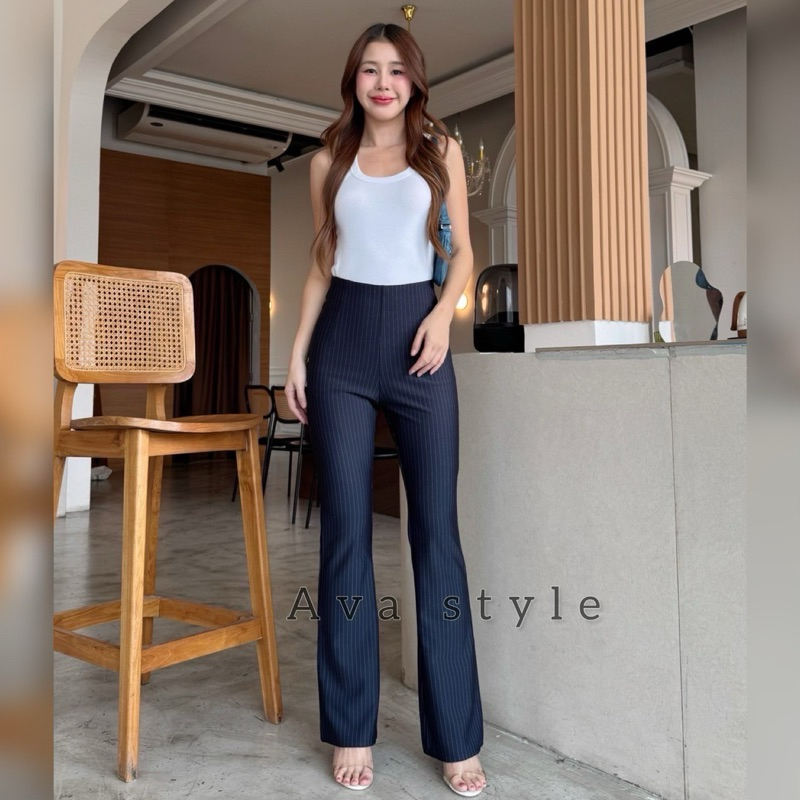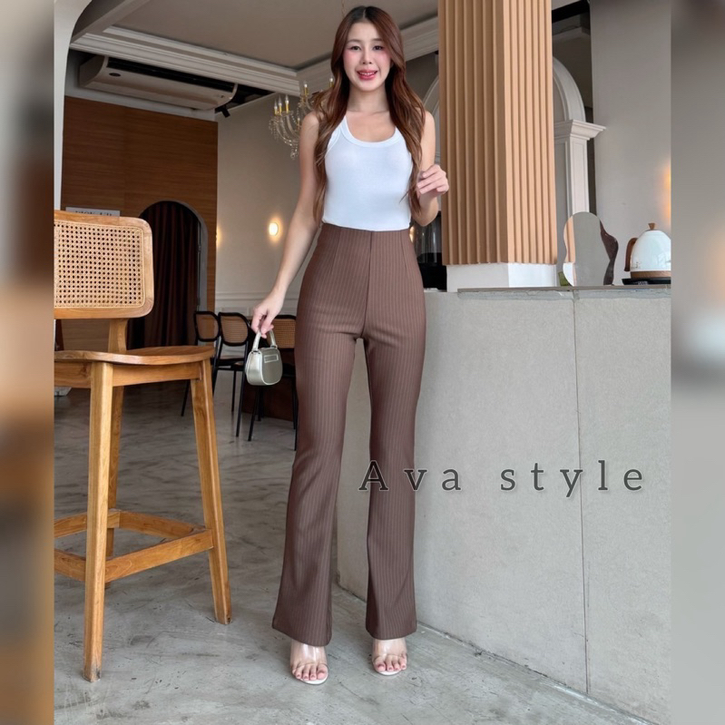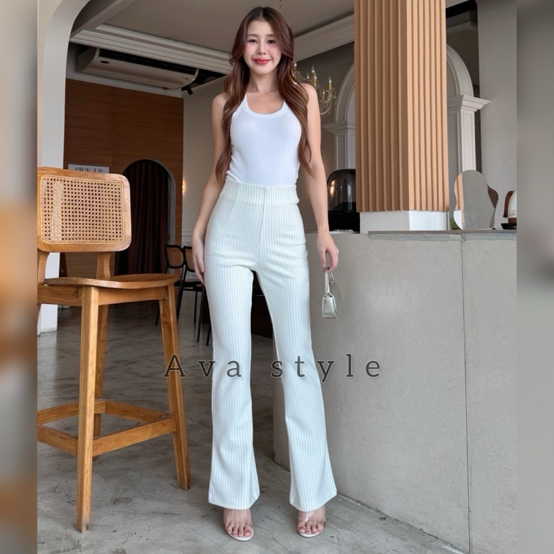 ?ผ้าหนา ใส่กระชับ?กางเกงขาม้าลายริ้ว เอวสูงชิปหลัง (ผ้าโรเชตลายริ้ว ) ผ้าดีทรงสวยมาก?