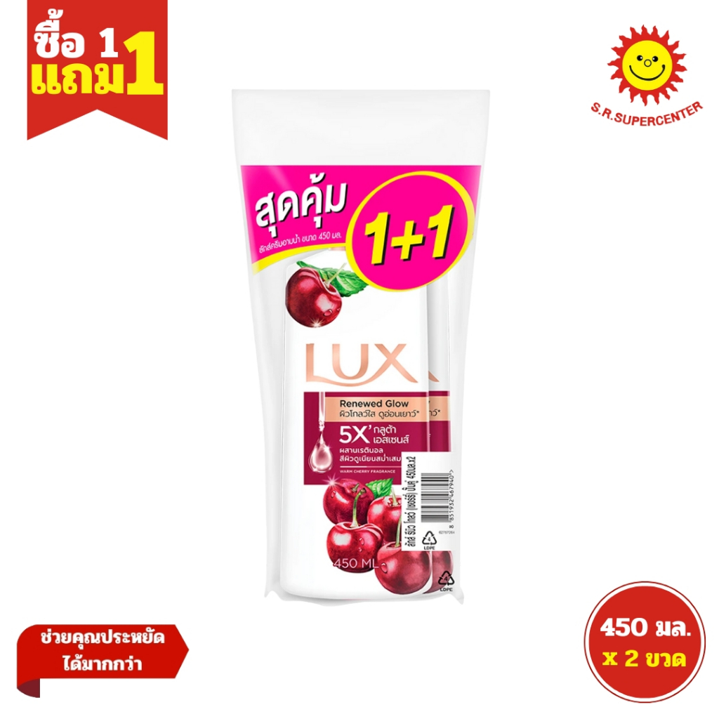 [ 1แถม1 ] Lux ลักส์ ครีมอาบน้ำ หัวปั๊ม ขนาด 450 มล. (แพ็คคู่1+1) คละสูตร