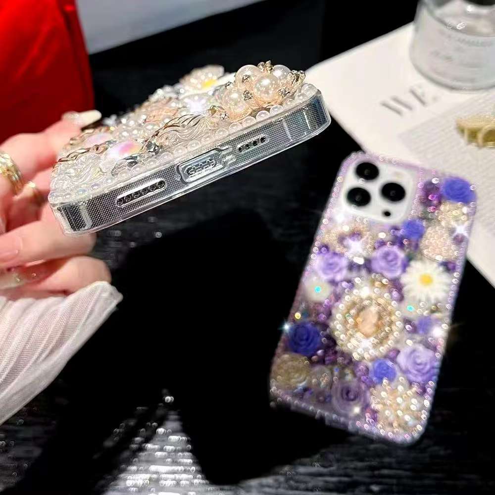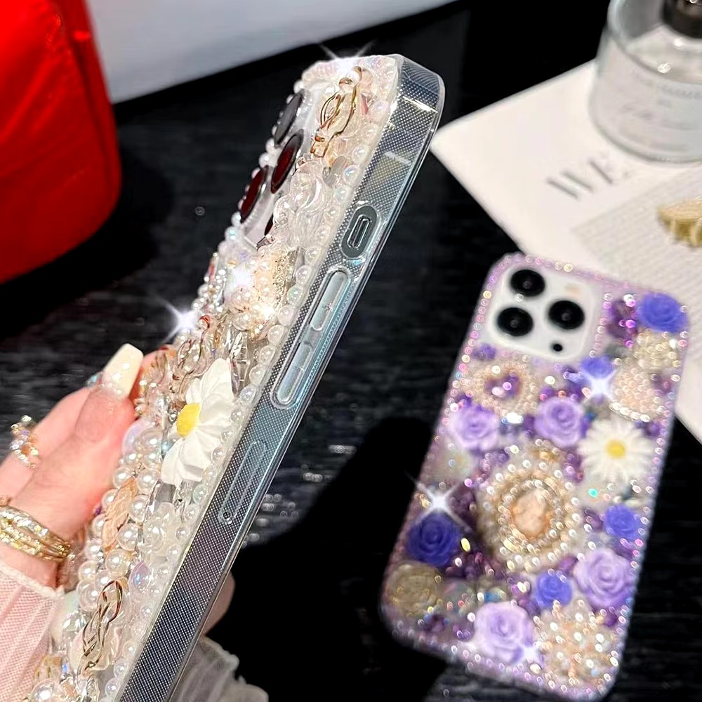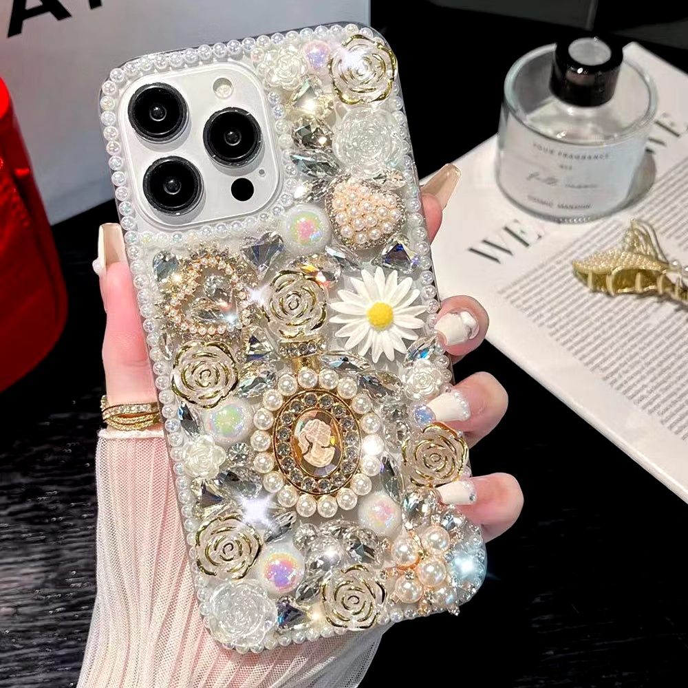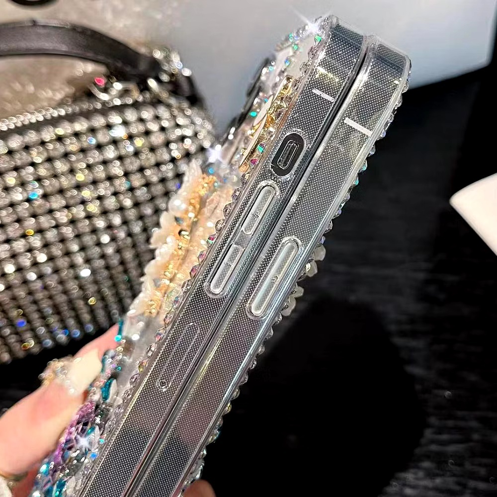 เคสโทรศัพท์แฟชั่นสําหรับOPPO Reno14 F 13F 5G / Reno 13 12 11 10 Pro / Reno8 Z 8T 7Z 6Z 5 ปลอกGlitterคริสตัลหินPearl Queen DIYฝาครอบป้องกัน