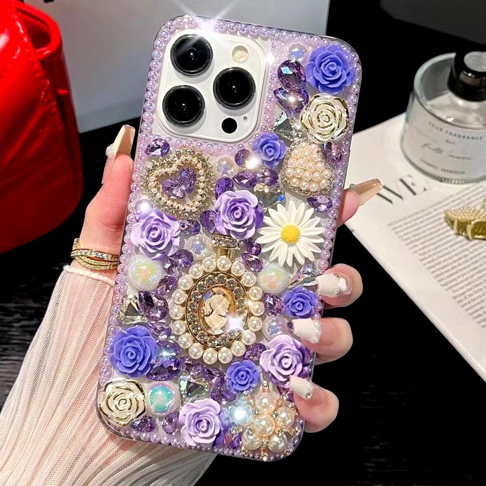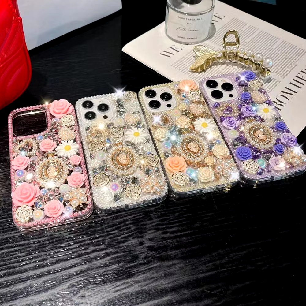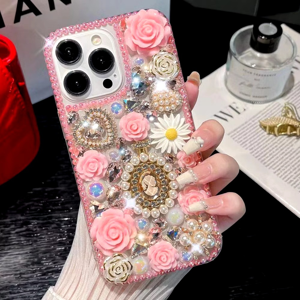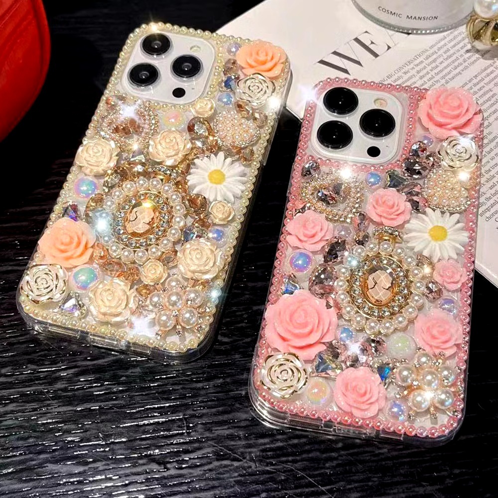 เคสโทรศัพท์แฟชั่นสําหรับOPPO Reno14 F 13F 5G / Reno 13 12 11 10 Pro / Reno8 Z 8T 7Z 6Z 5 ปลอกGlitterคริสตัลหินPearl Queen DIYฝาครอบป้องกัน