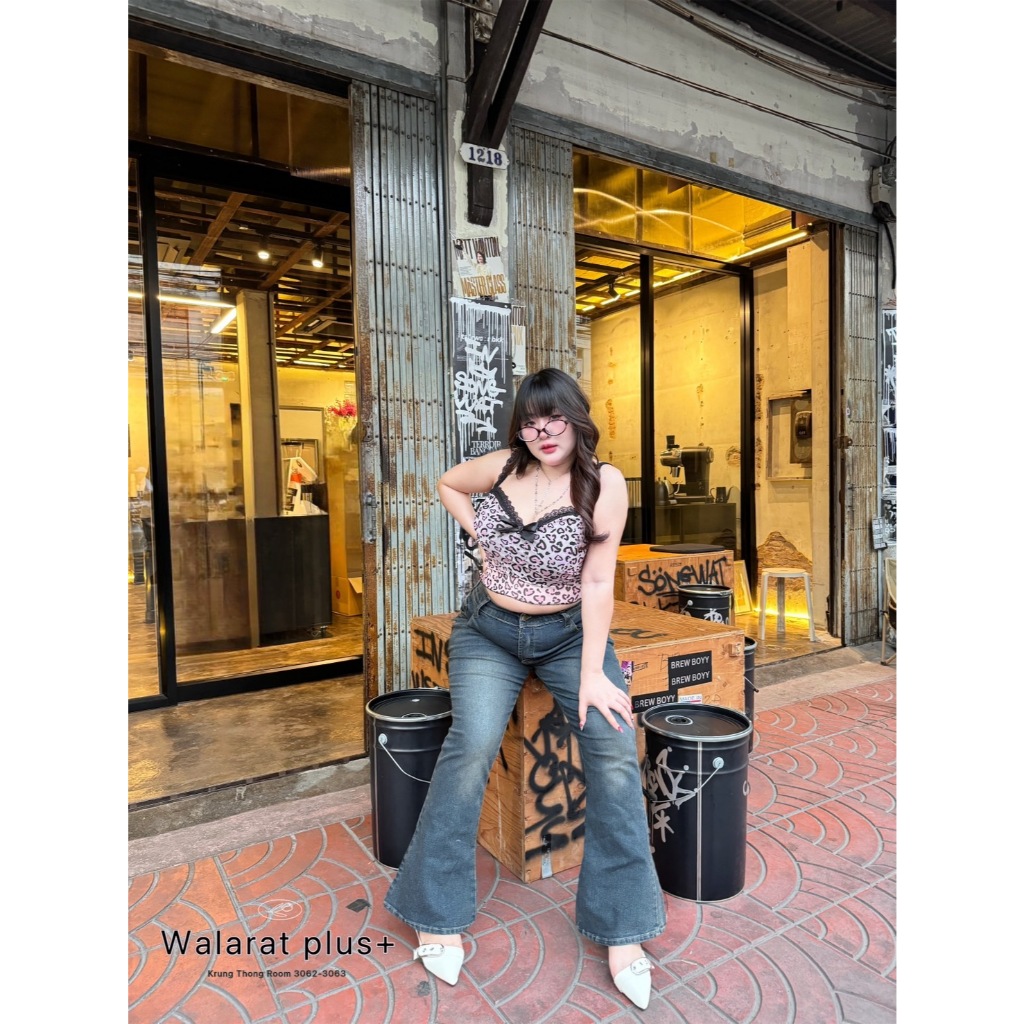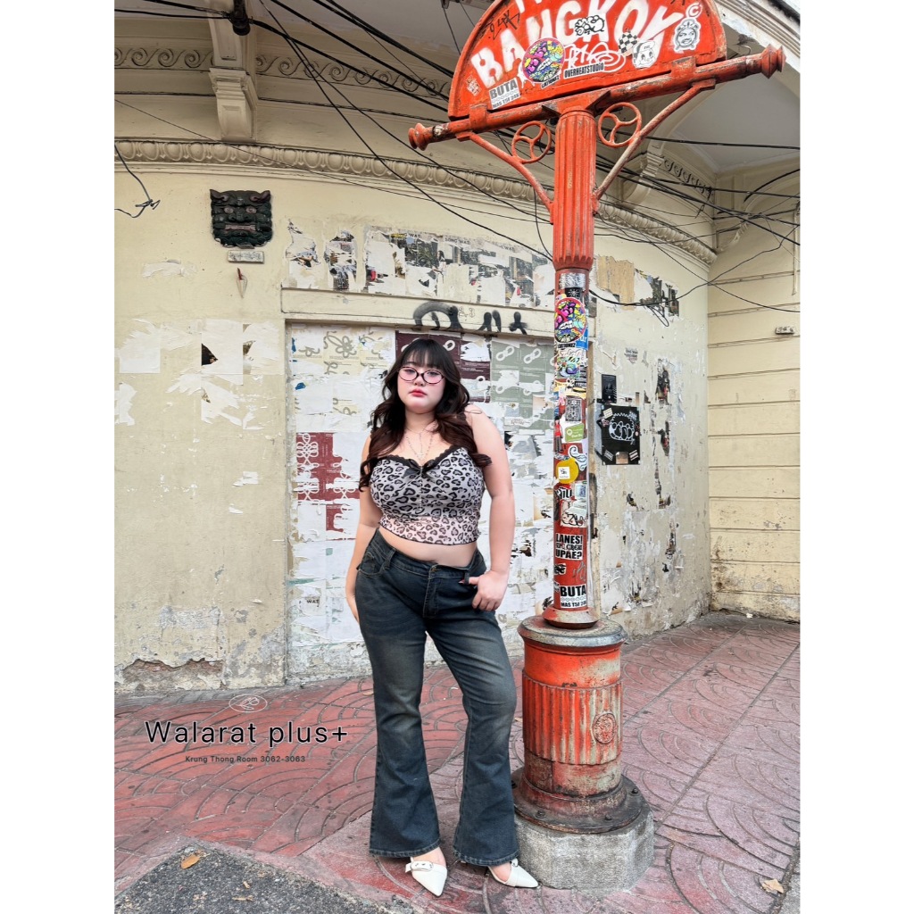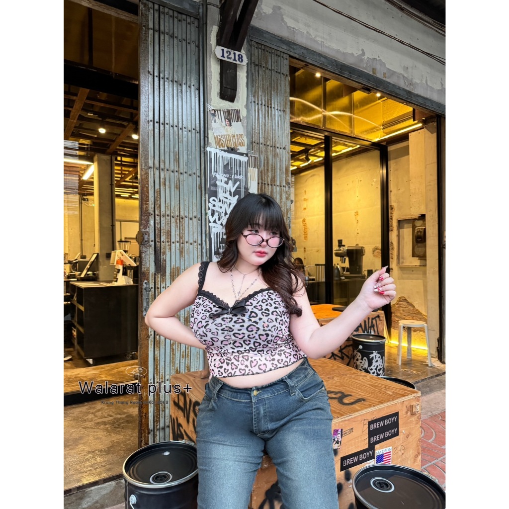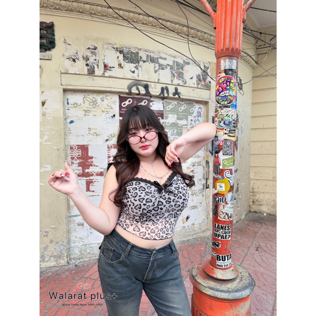 ?เสื้อสายเดี่ยว สาวอวบ อก36-52 ลายเสือสุดแซ่บ แต่งขอบลูกไม้ สายปรับได้
