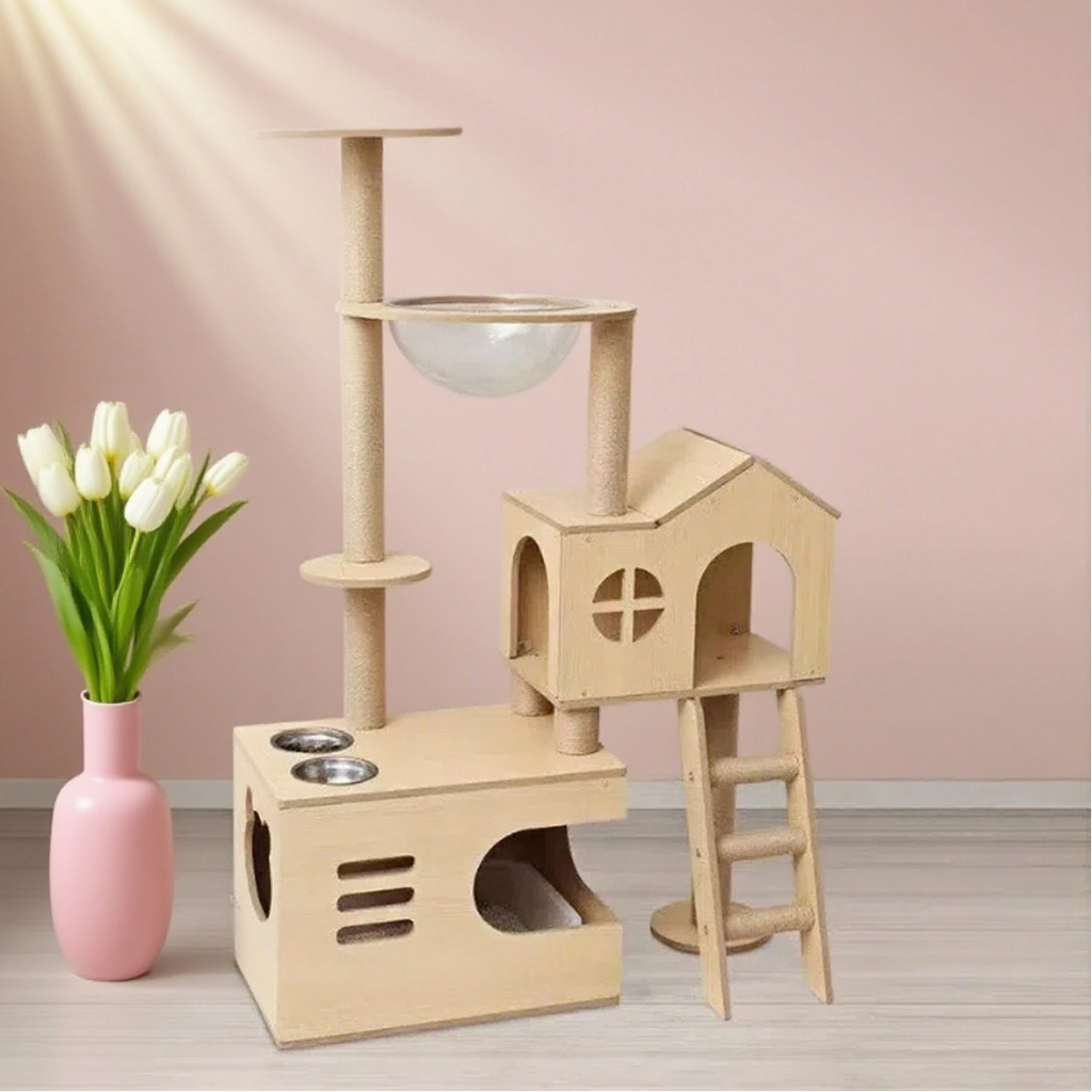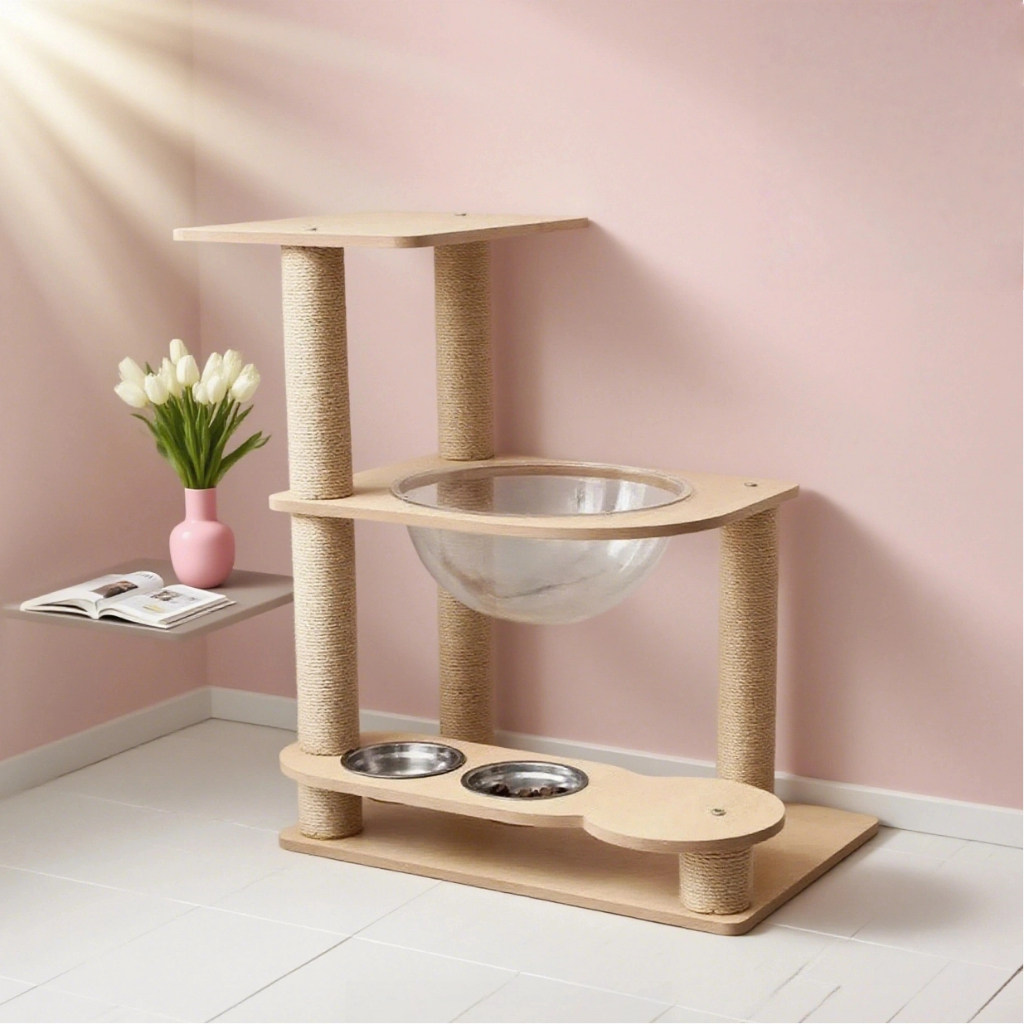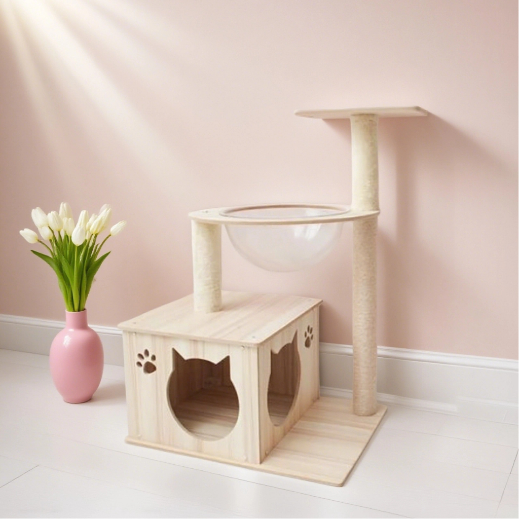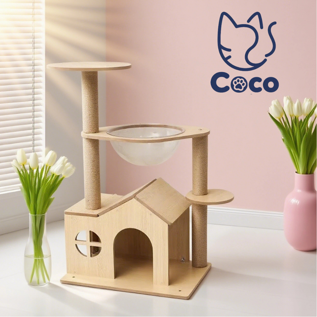 CoCo.PET Cat treeเตียงแมวแมว、ฤดูร้อนยังสามารถเย็นมาก、รูแมว、อ่างอาบน้ําใสและปอมปอม、วัสดุอะคริลิค(หลายแบบ)