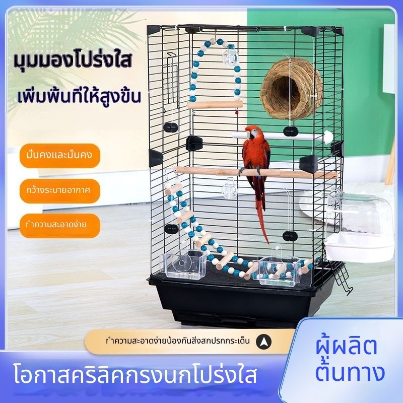 กรงนกแก้ว กรงนกโปร่งใส ผิวเสือโบตั๋น Xuanfeng King Size Home Villa พื้นที่ขนาดใหญ่เพิ่มกรงชมสูง