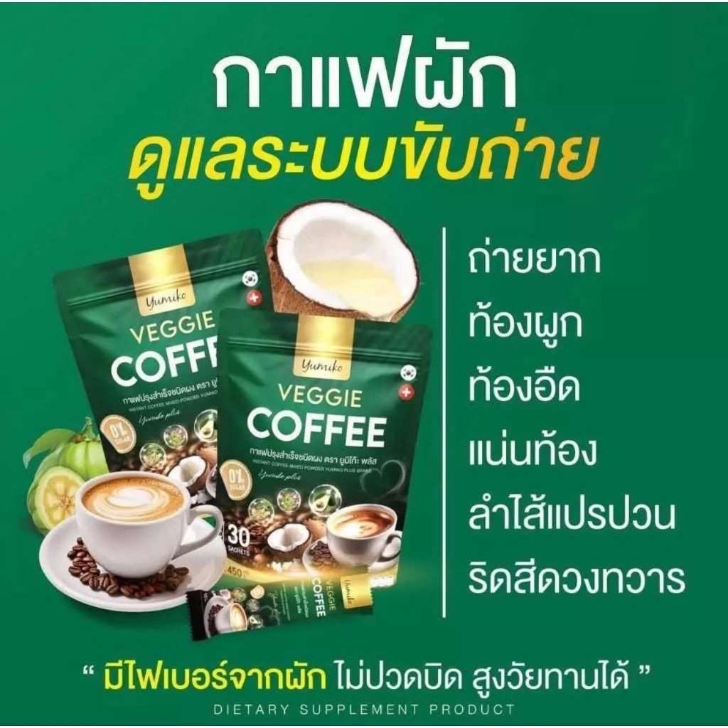 กาแฟ ยูมิโกะ VEGGIE COFFEE กาแฟผักไฟเบอร์ คลอโรฟิลล์ ถ่ายดี ไม่มีน้ำตาล
