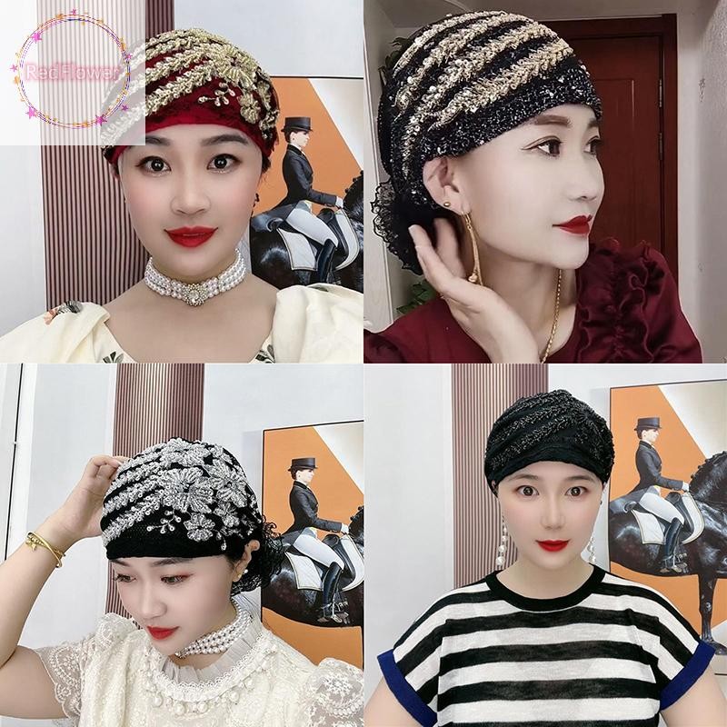 RedFlower ฤดูร้อน Breathable ลูกไม้ Turban หมวกสําหรับผู้หญิงผมหมวก Head Wraps Bonnet มุสลิมหมวก Headscarf ยืดหยุ่นคลุมทั้งหมด Headwear TH