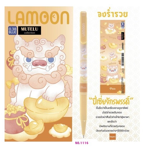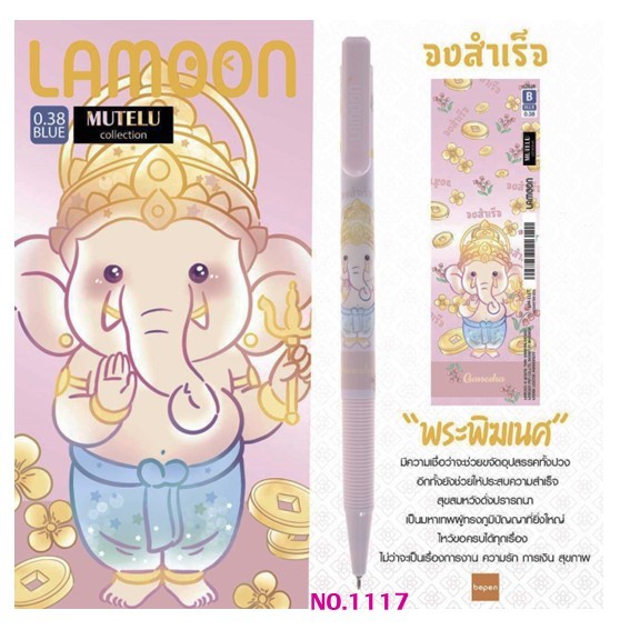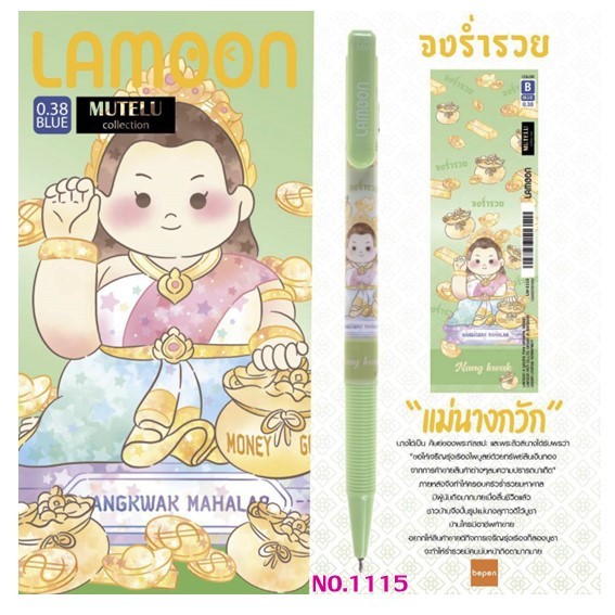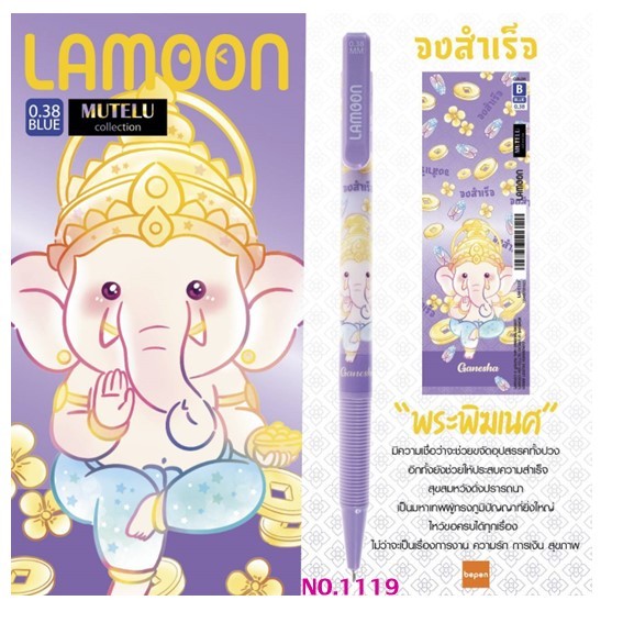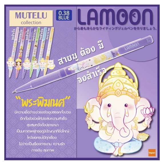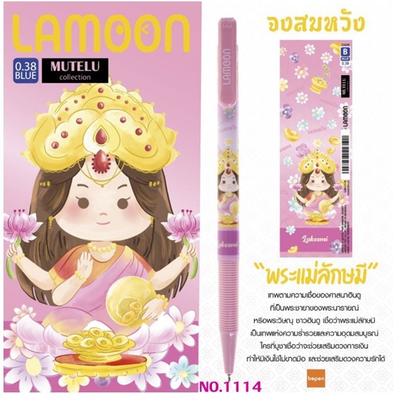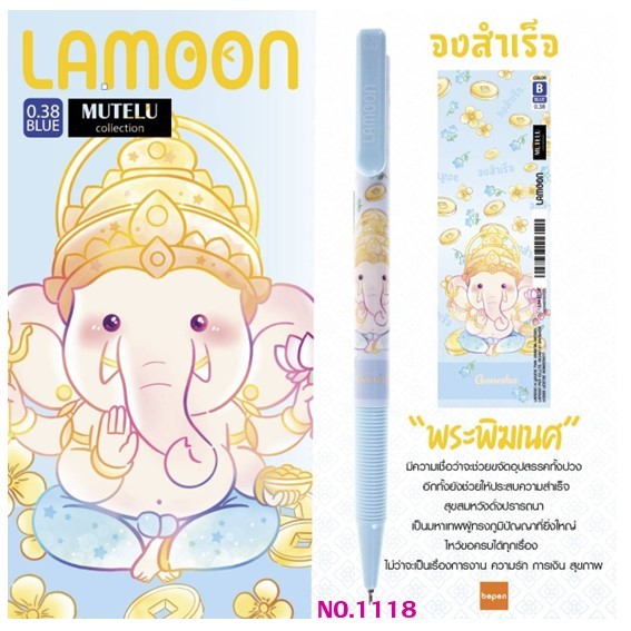 ปากกาลูกลื่น LAMOON หมึกน้ำเงิน ขนาด 0.38 mm.ลายองค์เทพ (แพ็คลาย 12 ด้าม) เลือกลายปากกาด้านใน