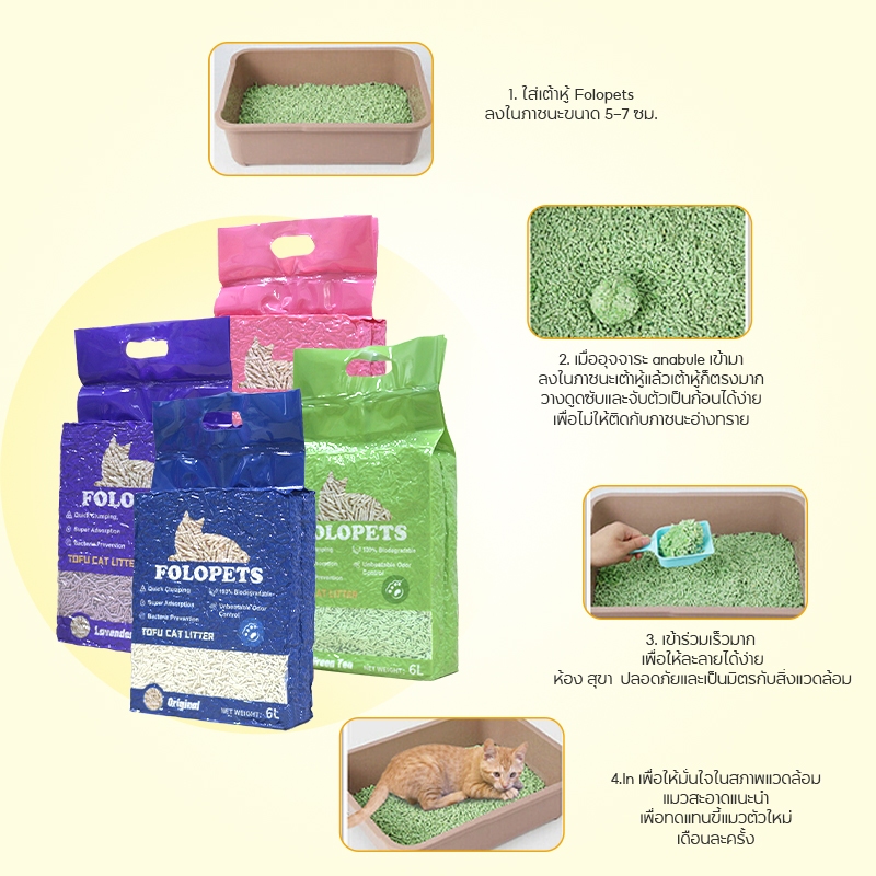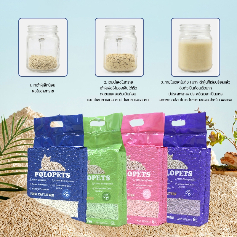 ทรายแมวเต้าหู้ ออร์แกนิค100% ผลิตจากกากถั่วเหลืองธรรมชาติ ทรายแมว ทรายแมวเต้าหู้ ทรายเต้าหู้ ระงับกลิ่น สําหรับแมว 6 L