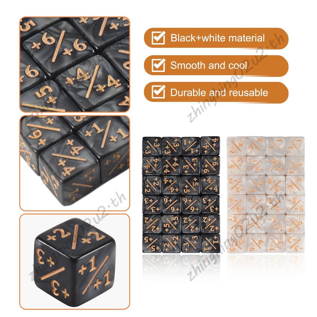 ปริมาณที่เพียงพอ: มาพร้อมกับเคาน์เตอร์ลูกเต๋า 48 ชิ้นรวมถึงเคาน์เตอร์ลูกเต๋าบวกสีขาว 24 ชิ้นและเคาน์เตอร์ลูกเต๋าสีดำ 24 ชิ้นเหมาะสำหรับการเล่นเกมหรือเปลี่ยน