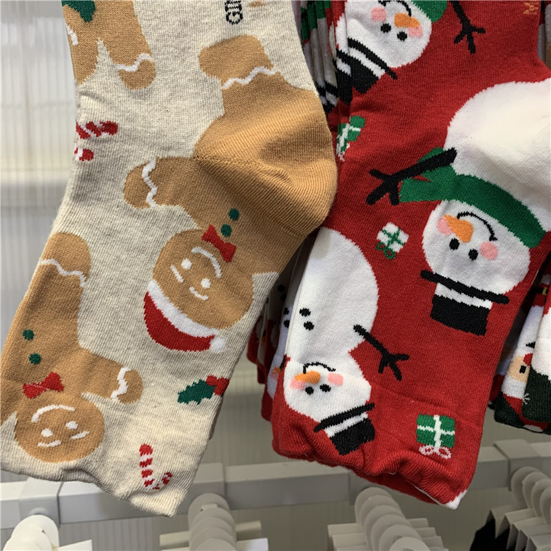 ฤดูใบไม้ร่วงฤดูหนาวมนุษย์หิมะสีแดงขนมปังขิงคริสต์มาสที่อบอุ่นถุงเท้ากลางหลอดการ์ตูนน่ารักซานตาคลอสสูง