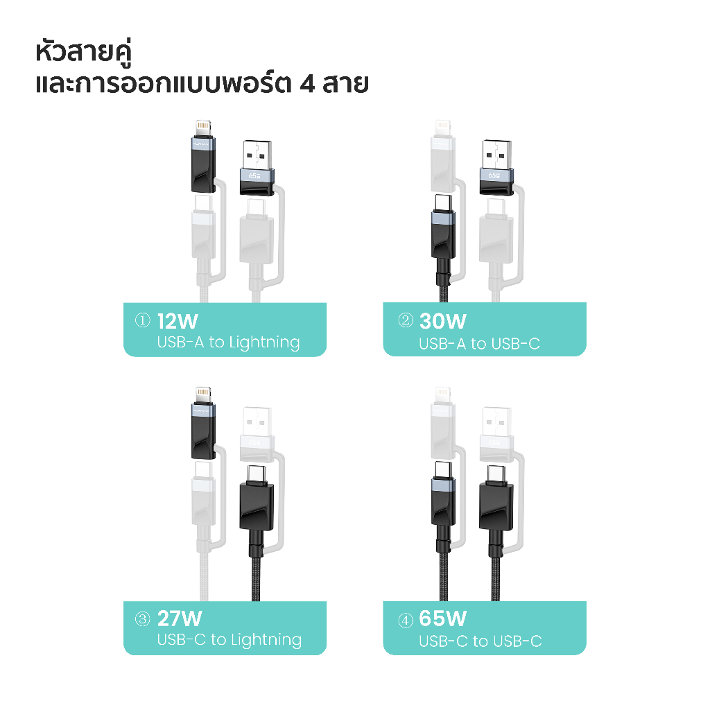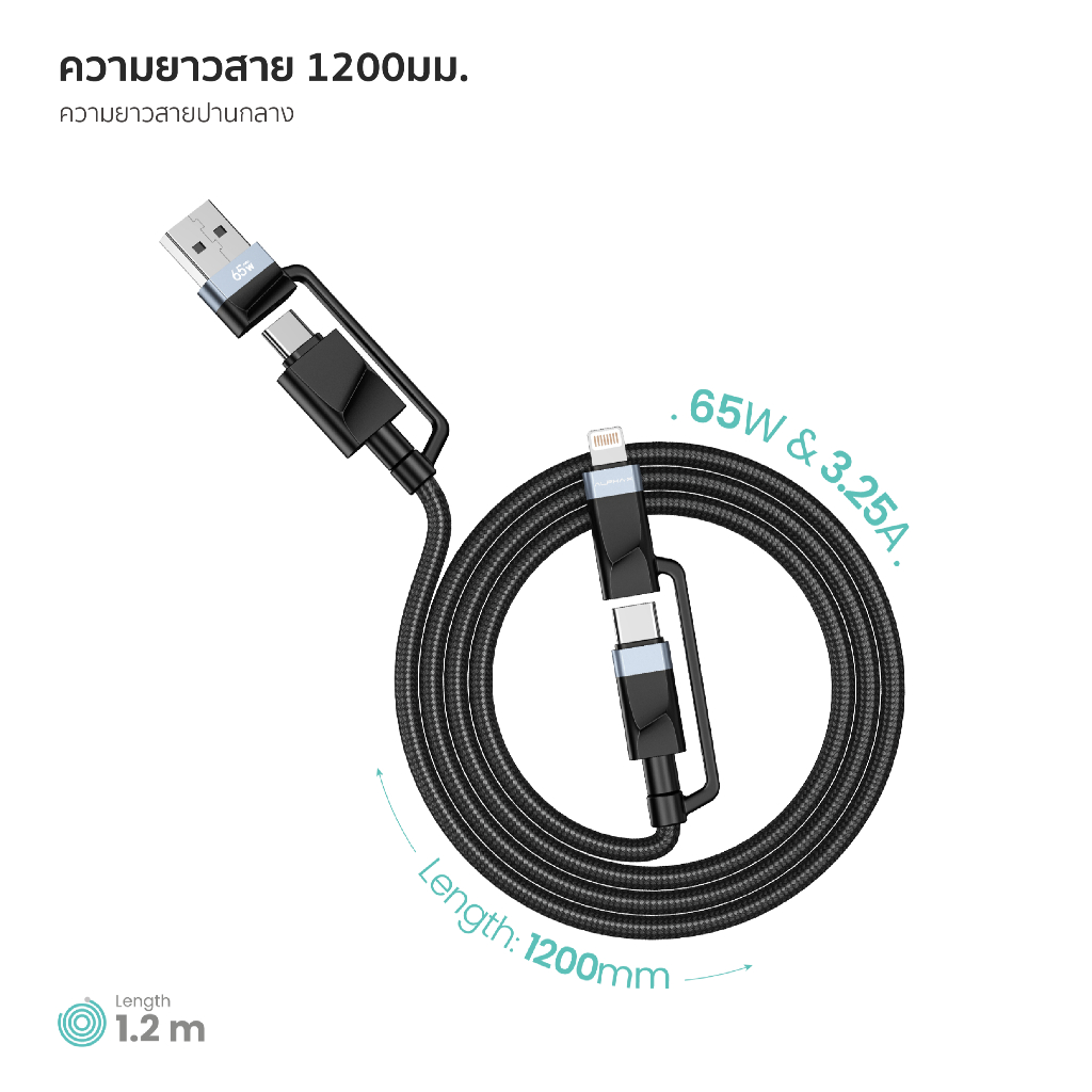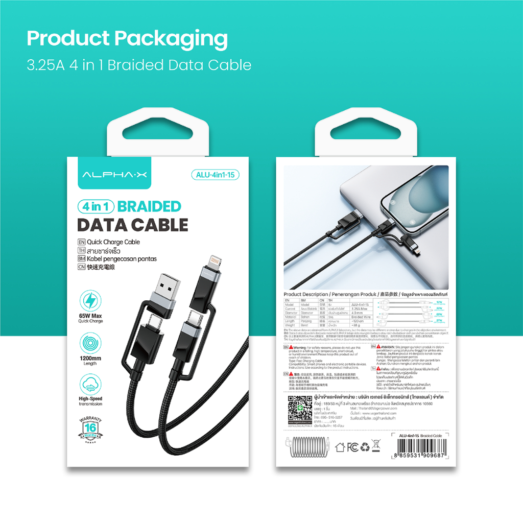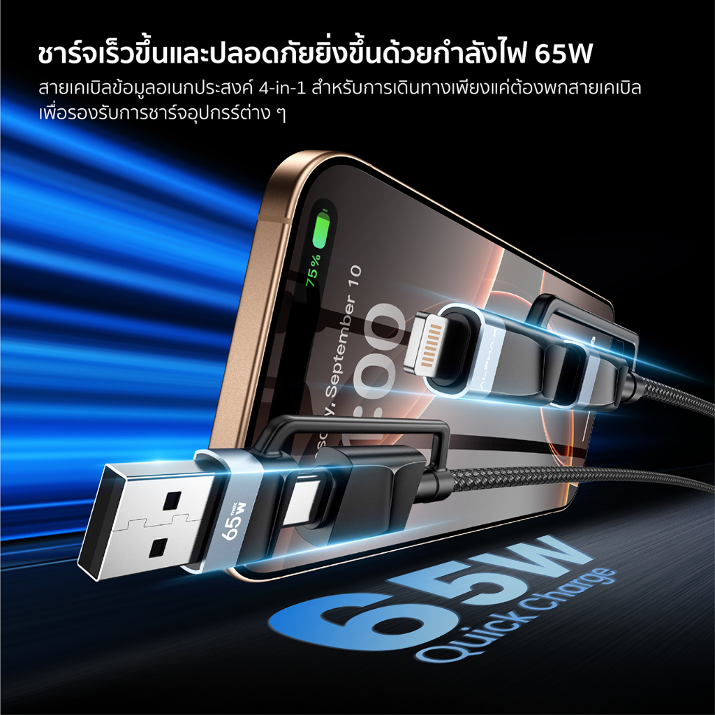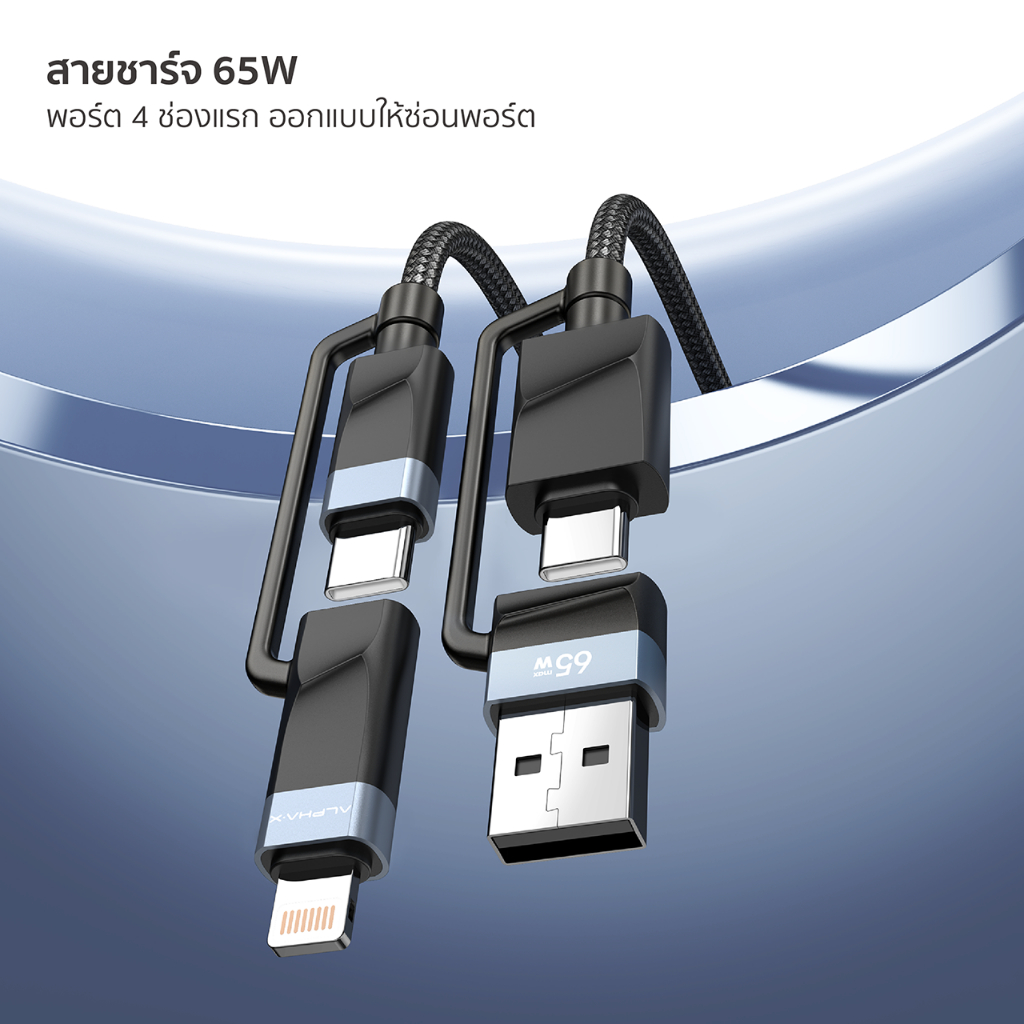 ALPHA X สายชาร์จเร็ว รุ่นALU-4in1-15 สายชาร์จ Type C / Lightning Cable/ USB-A【รับประกัน 16 เดือน】