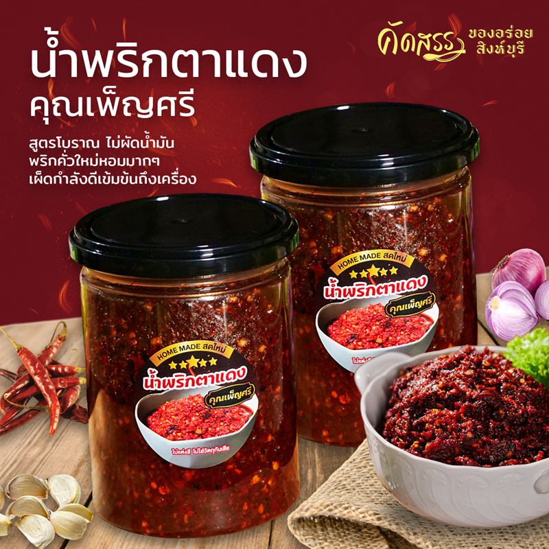 เซ็ตคู่น้ำพริกคุณเพ็ญศรี : ปลาร้าสับสมุนไพร กระปุก 500 กรัม x น้ำพริกตาแดง กระปุก 500 กรัม