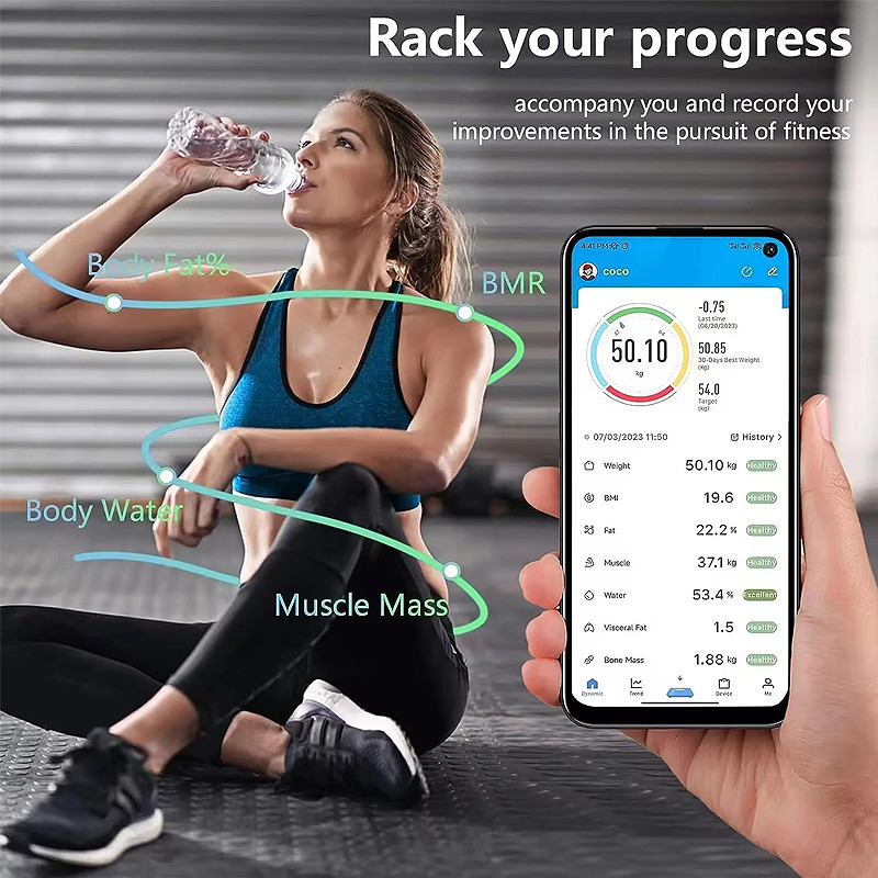 Roxart เครื่องชั่งน้ำหนักดิจิตอล ตาชั่ง ชาร์จUSB วัดไขมัน มวลน้ำ มวลกระดูก กล้ามเนื้อ ไขมันในช่องท้อง รับได้180 Kg