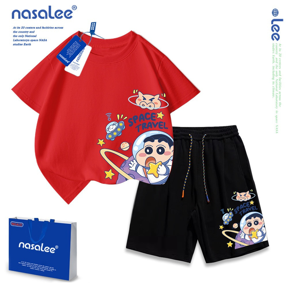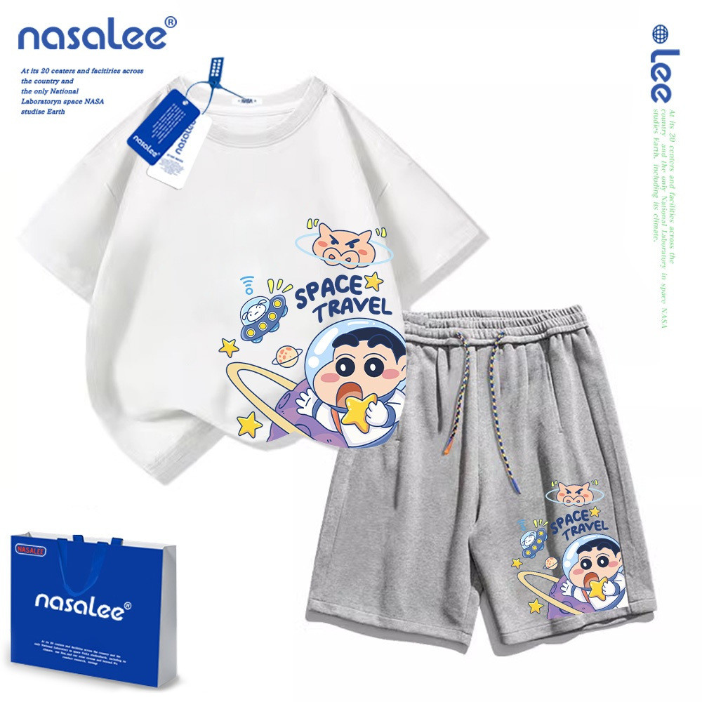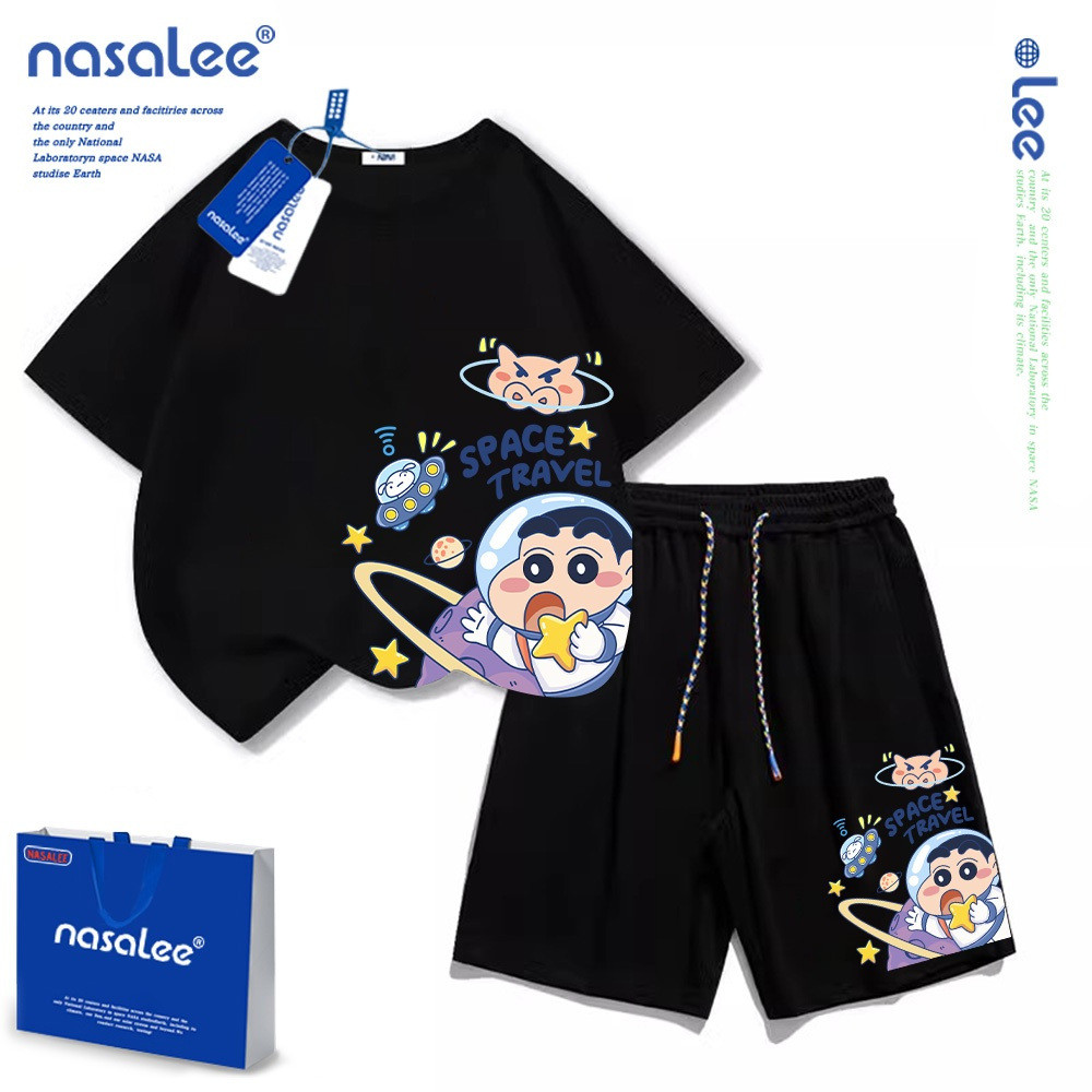 [ฤดูร้อนผลิตภัณฑ์ใหม่] [100-160] NASA ฤดูร้อนญี่ปุ่น Crayon Shin-Chan พิมพ์ Casual Warm High Street Hip-Hop ผู้ชายผู้หญิง Slimmer ดู All-Match ชุดอินเทรนด์
