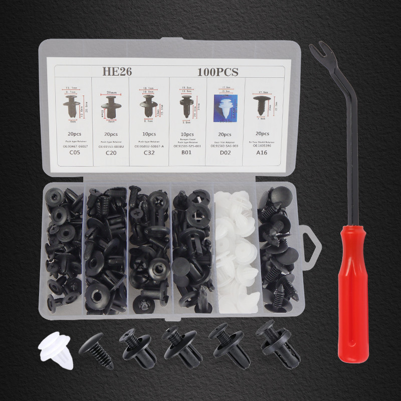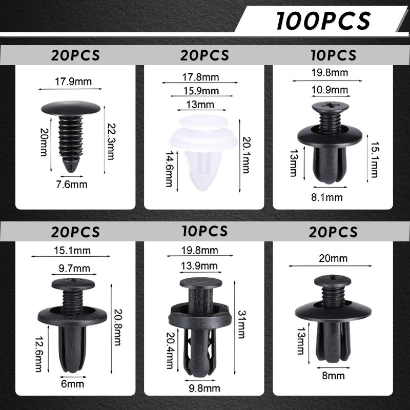 MUSCLE COW 100 ชิ้น หมุดกิ๊บล็อค หมุดกิ๊บล็อคกันชน หมุดพลาสติก กิ๊บล็อครถยนต์หมุดยึดพลาสติก6 ชิ้นรถยนต์ Rivets คลิปผสมรถ