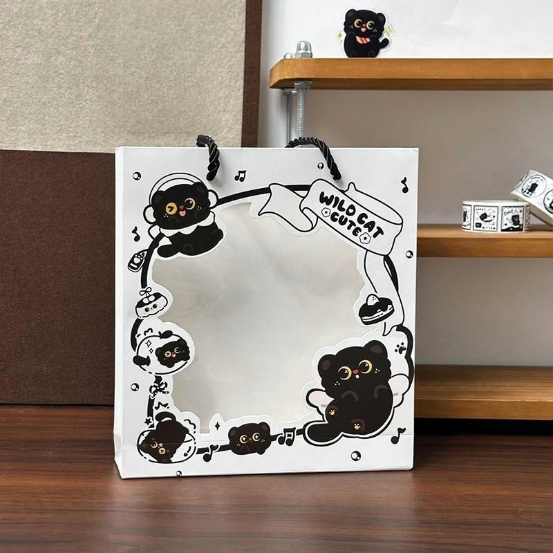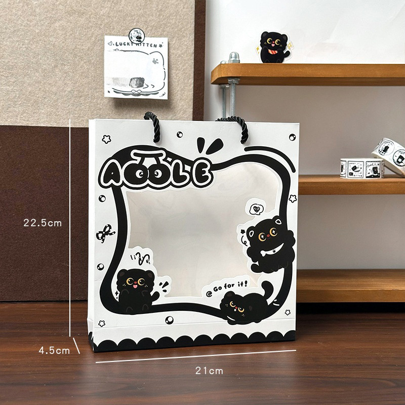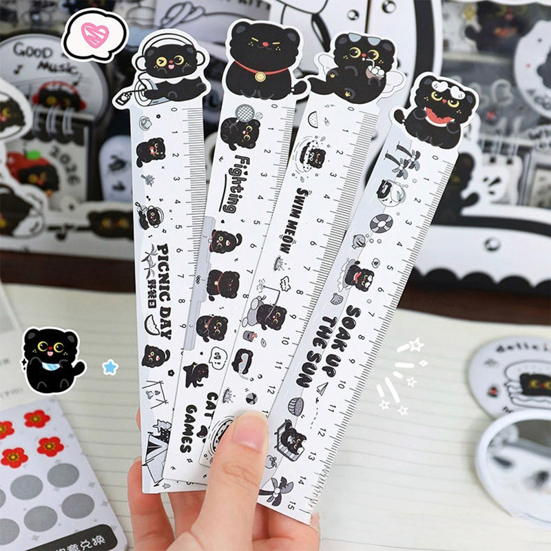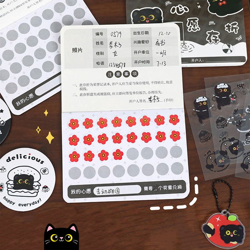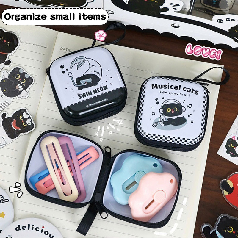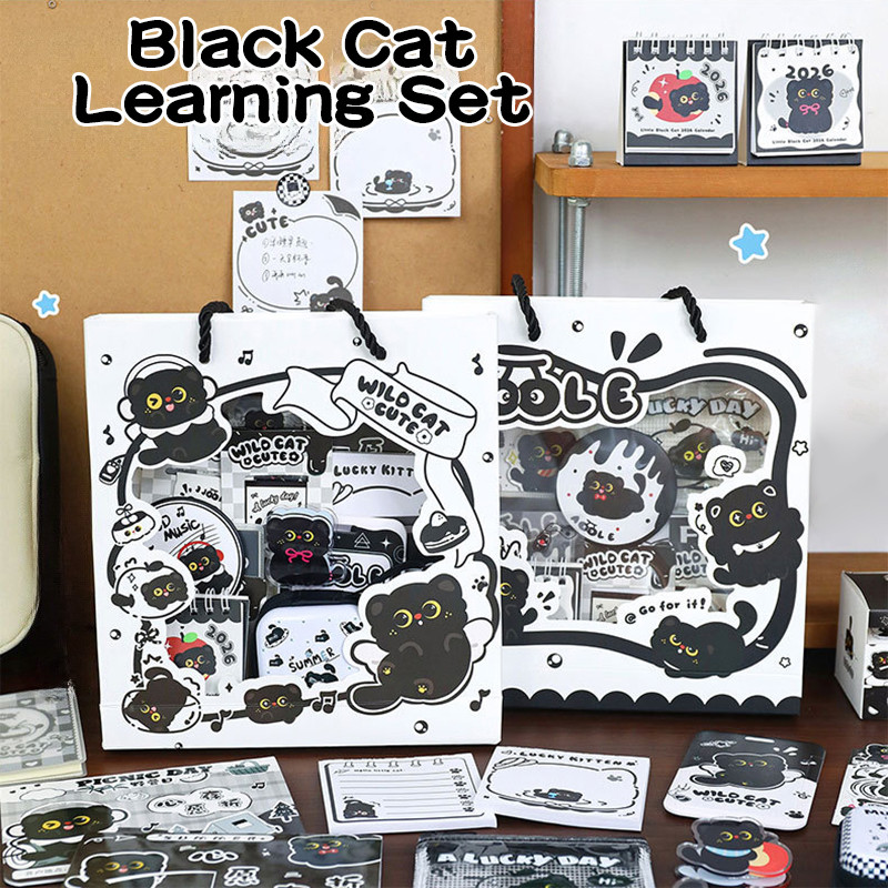 ชุดเครื่องเขียนแมวดําการ์ตูนน่ารักการเรียนรู้กล่องของขวัญอุปกรณ์เครื่องเขียนนักเรียน