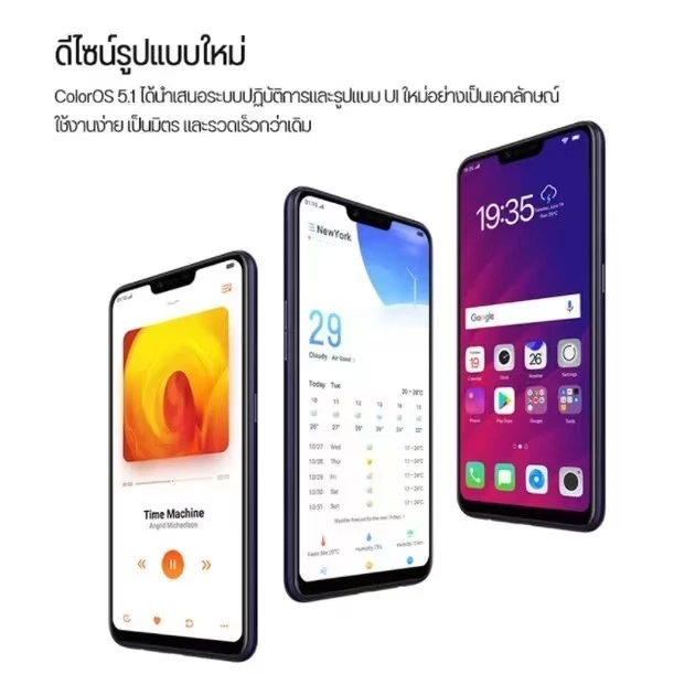 ระบบปฏิบัติการ : ColorOS 5.1 บนพื้นฐาน Android 8.1