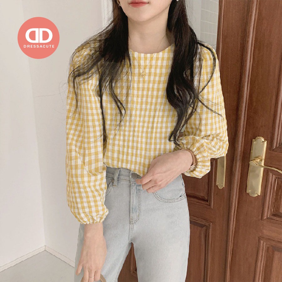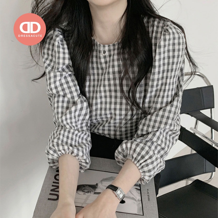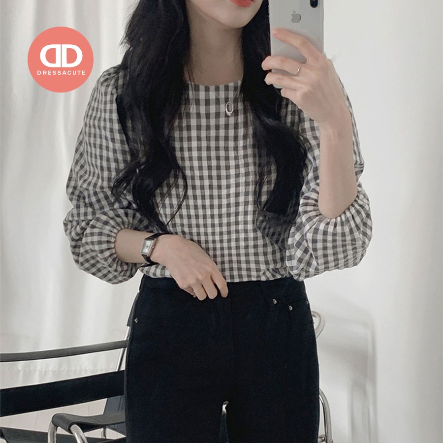น่ารักมาก ? 680 เสื้อเชิ้ตลายสก๊อตแขนยาว คอกลม แฟชั่นผู้หญิง ใส่ทำงาน?