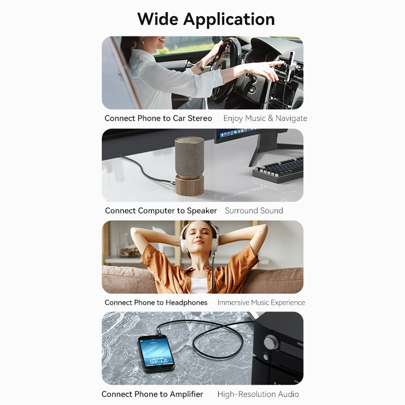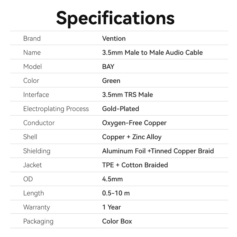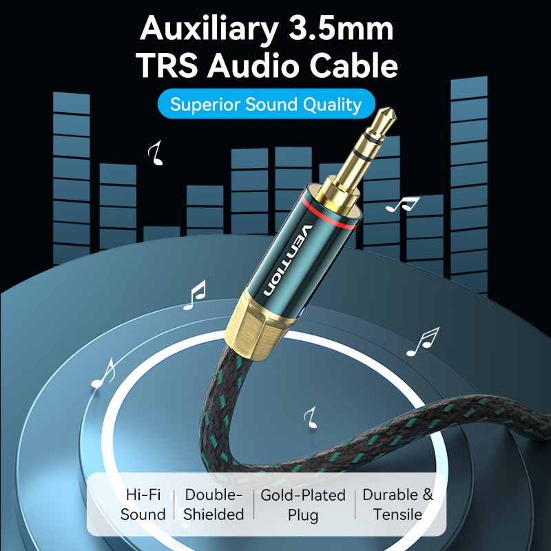 Vention สายสัญญาณเสียง 3.5 มม. Aux TRS ชายกับชายสําหรับสมาร์ทโฟนแท็บเล็ต Media Player MP3 เครื่องขยายเสียงรถยนต์ลําโพงหูฟัง