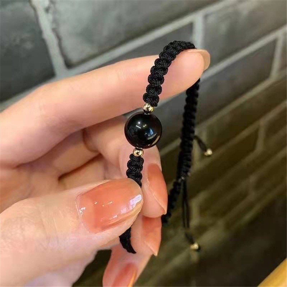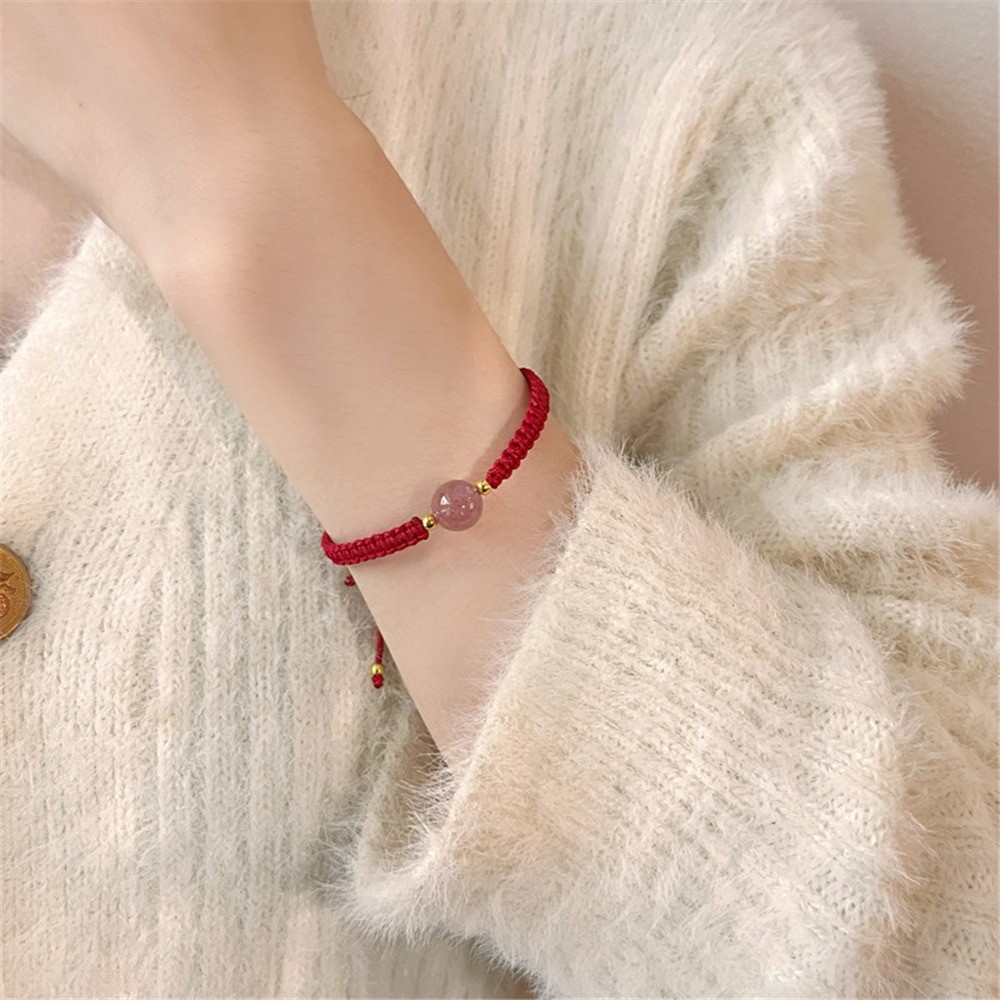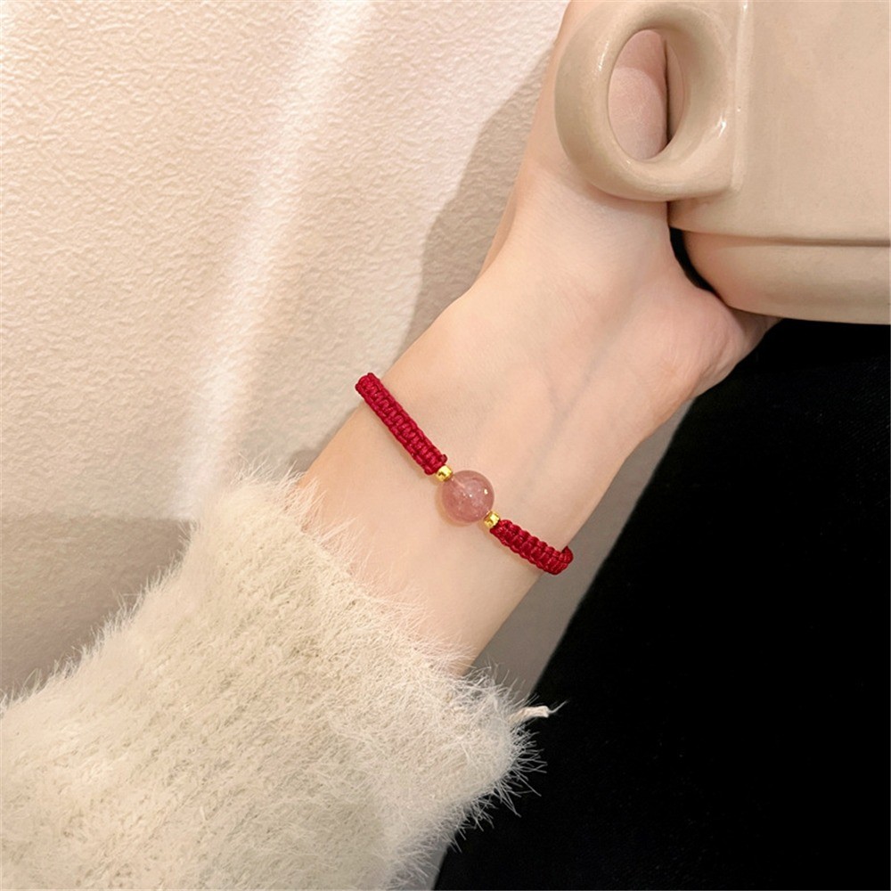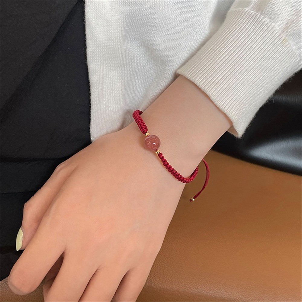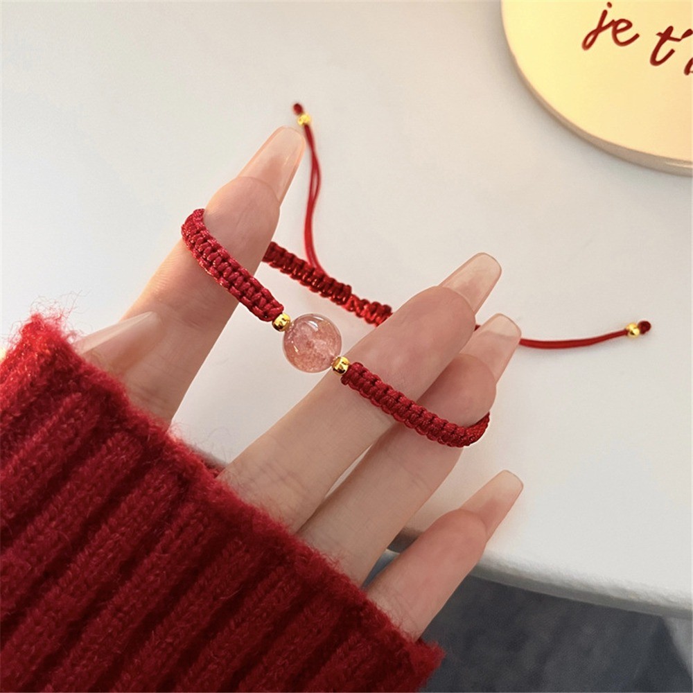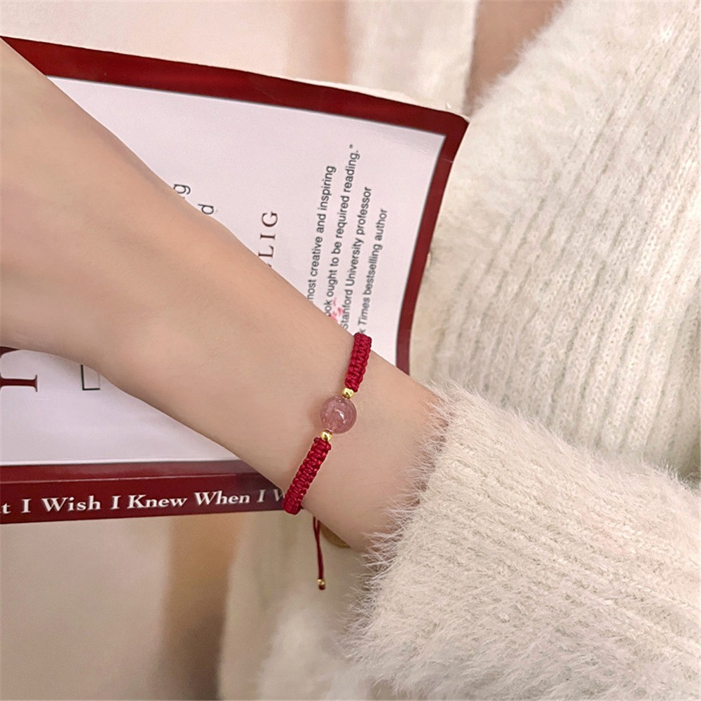 Ins Style New Obsidian Lucky Bead Bracelet สร้อยข้อมือคริสตัลสตรอเบอร์รี่สีแดง สร้อยข้อมือคู่รักทอ