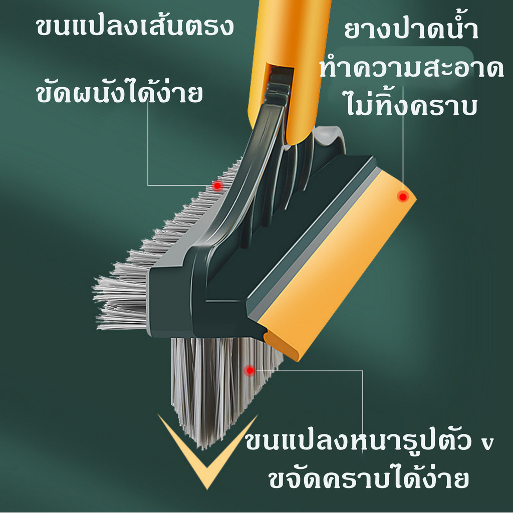 แปรงขัดพื้น แปรงถูพื้น แปรงขัดร่องยาแนว ขนแหลม ด้ามยาว ขัดห้องน้ำ ทำความสะอาด เข้าได้ทุกซอก ทุกมุม 3in1