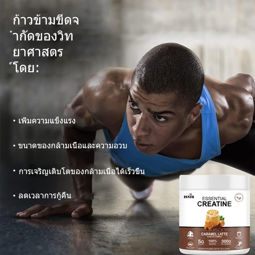 ISNIH Creatine Monohydrate Powder Muscle Growth ครีเอทีน 5000 เพิ่มพลังงานเพื่อการฟื้นตัวที่รวดเร็ว รสคาราเมลลาเต้ 300g