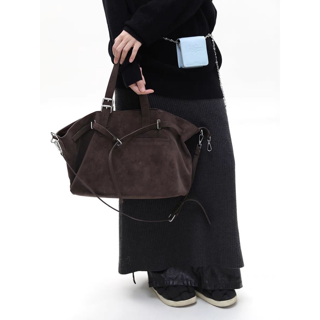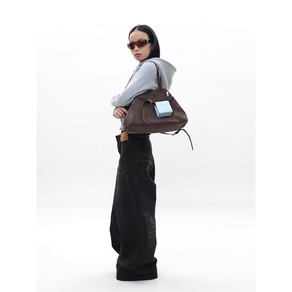 Yadou กระเป๋าโท้ทฝ้าความจุขนาดใหญ่ กระเป๋าสะพายไหล่แฟชั่นย้อนยุค