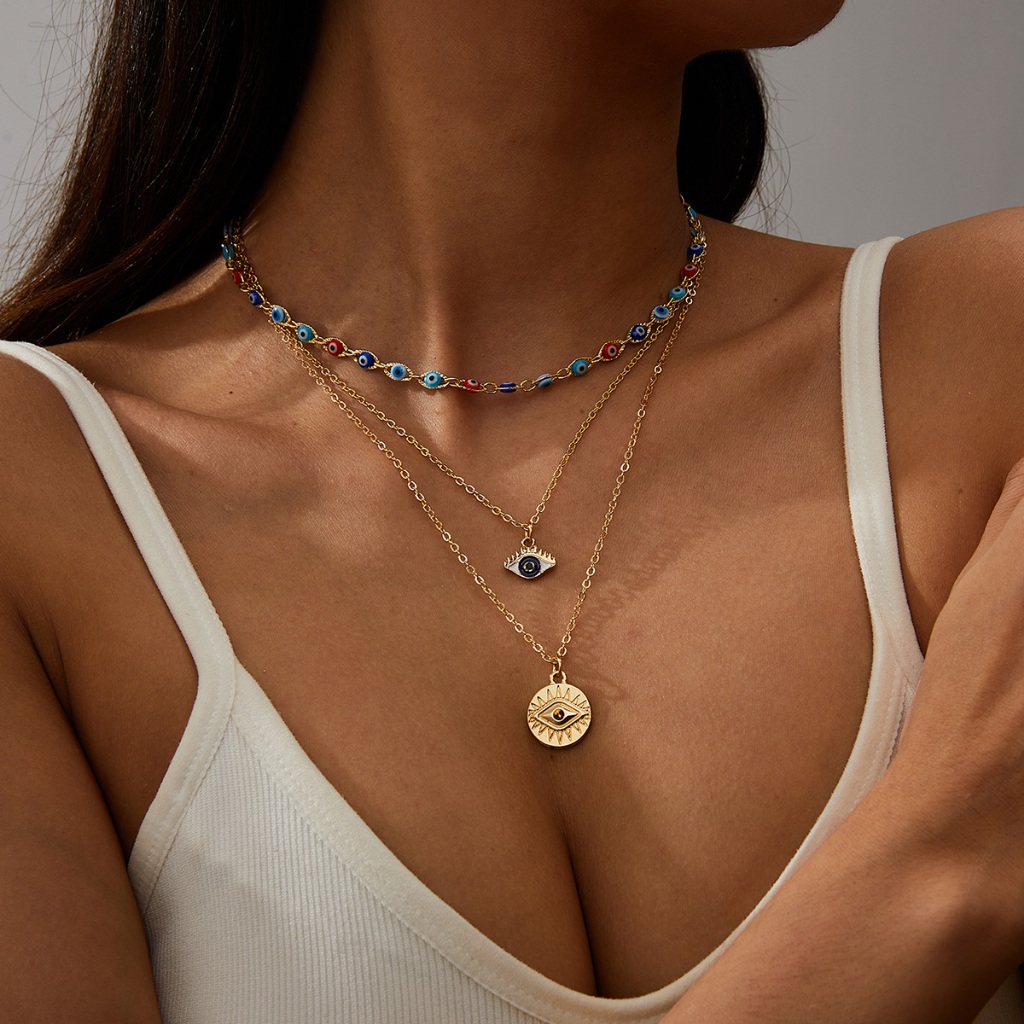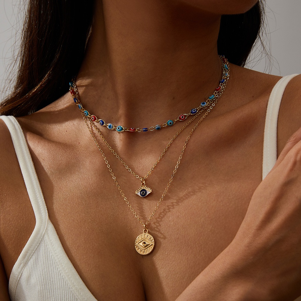 3 ชั้นแฟชั่น Retro Blue Evil Eye Blessed สร้อยคอ Lucky สร้อยคอผู้หญิงเครื่องประดับ Vintage ของขวัญ