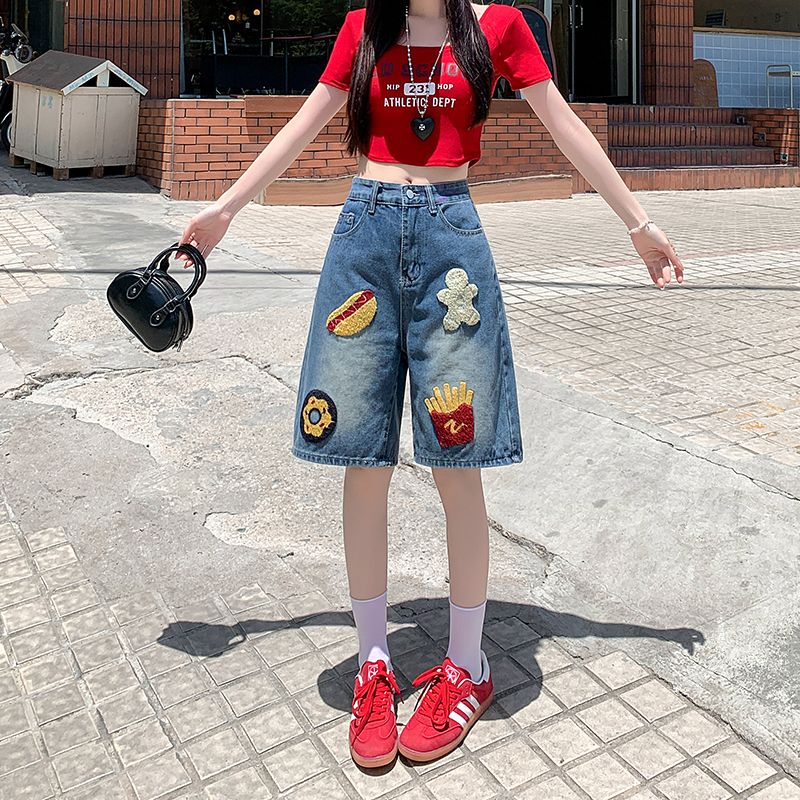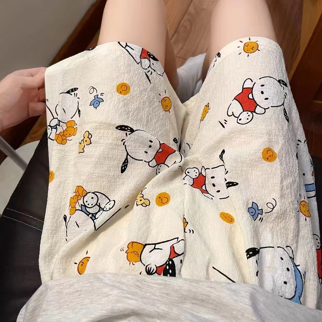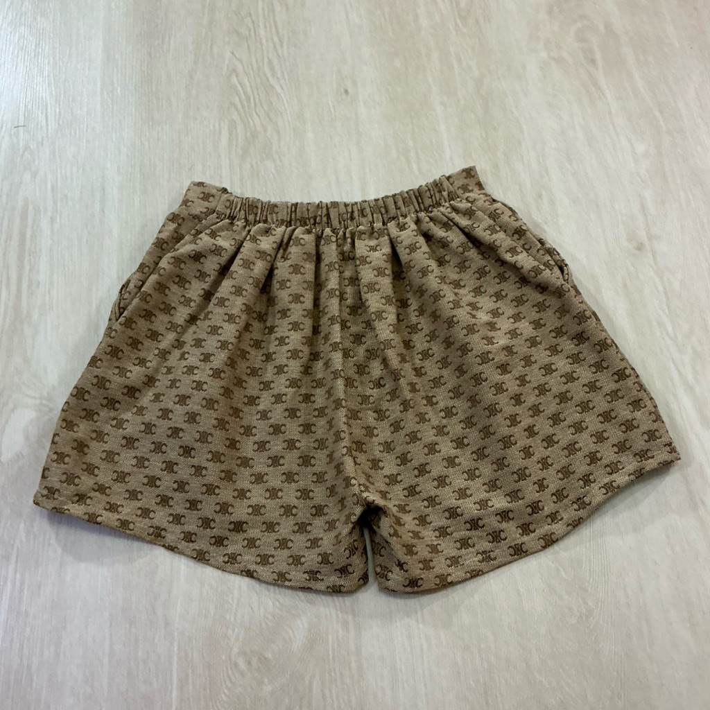 ? กางเกงขาสั้นผ้าทอลายแบรนด์ มีกระเป๋าจก 2 ข้าง