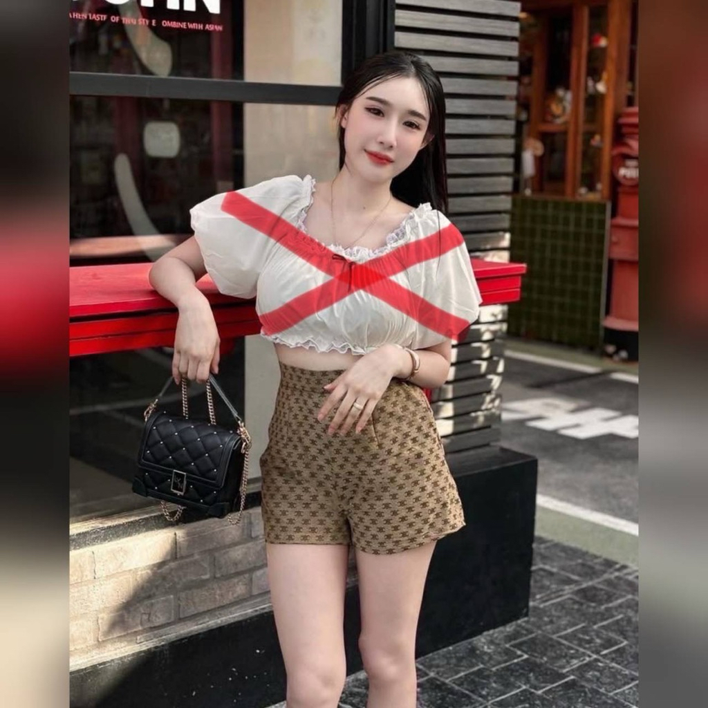 กางเกงขาสั้นผ้าทอลายแบรนด์ แมทกับเสื้อได้ทุกแนวเลยจ้า