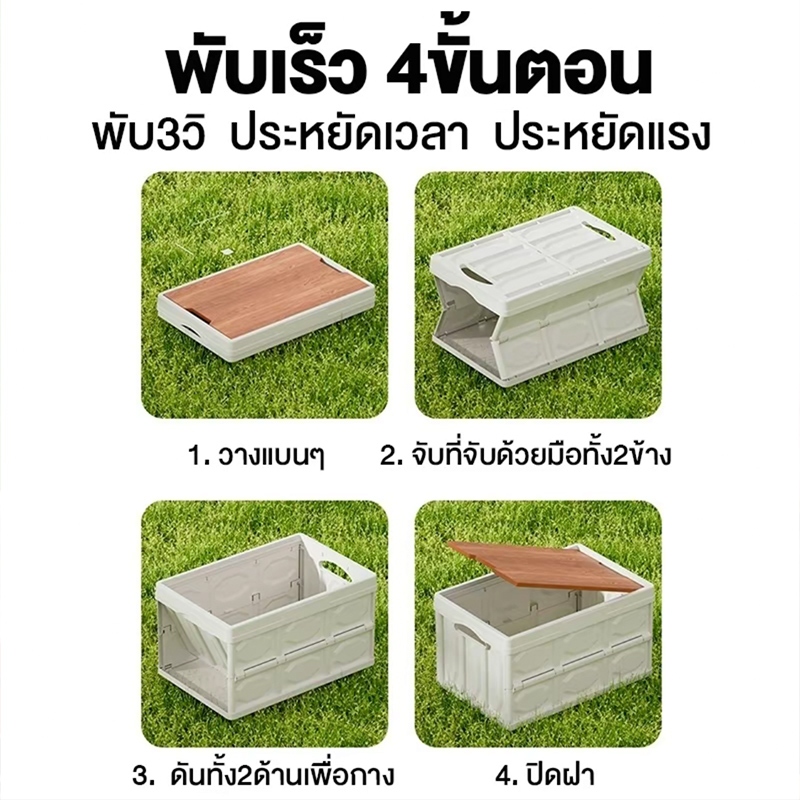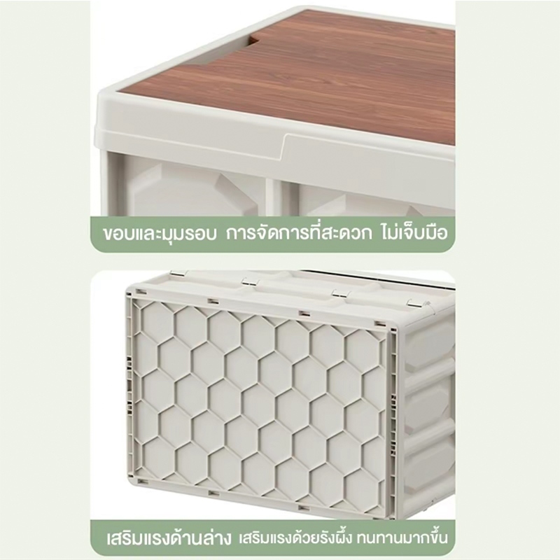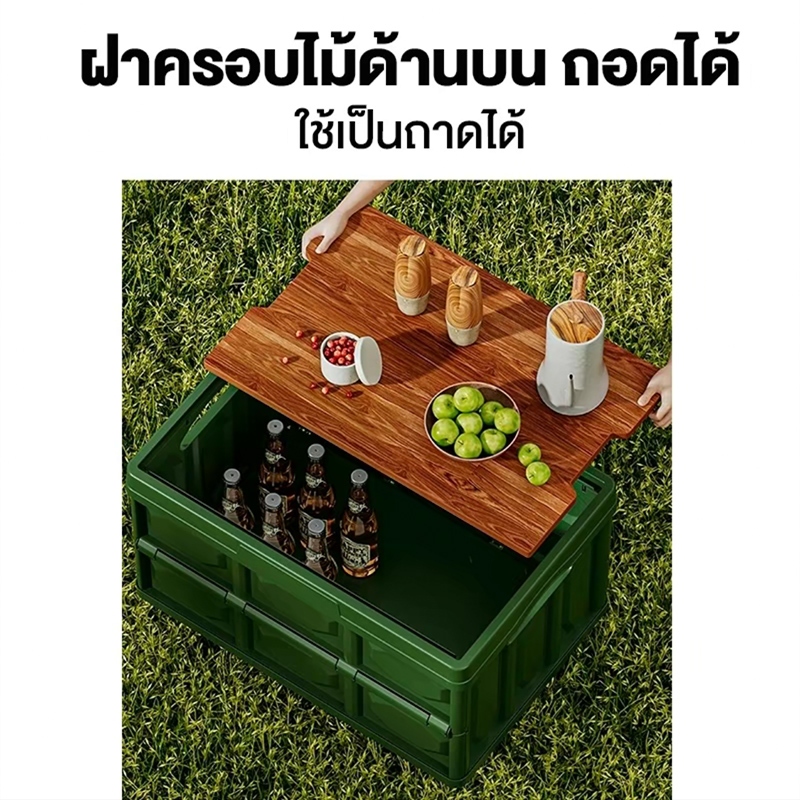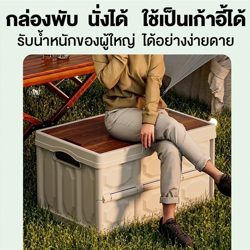กล่องอเนคประสงค 20L-50L ความจุแบริ่งที่แข็งแกร่ง กล่องใส่อุปกรณ์แค้มป์ปิ้งฝาไม้ ความจุขนาดใหญ่
