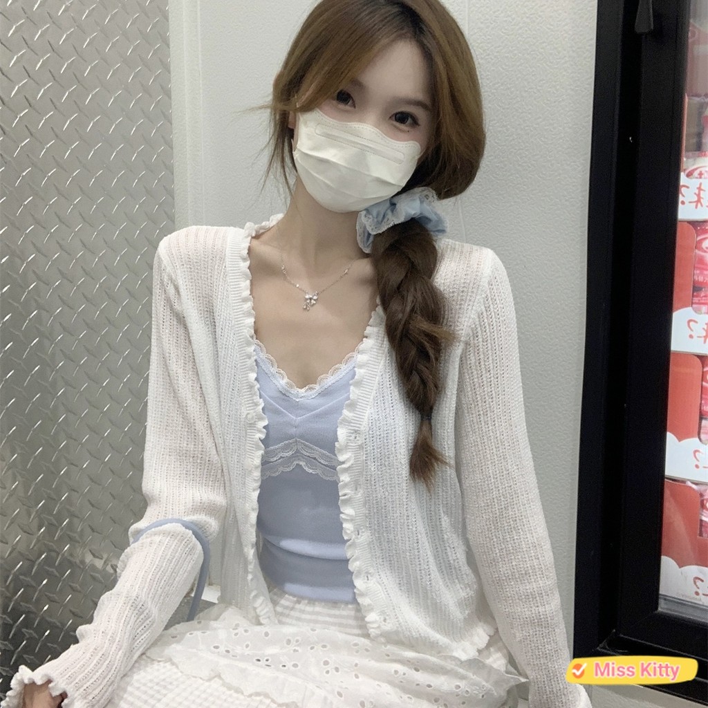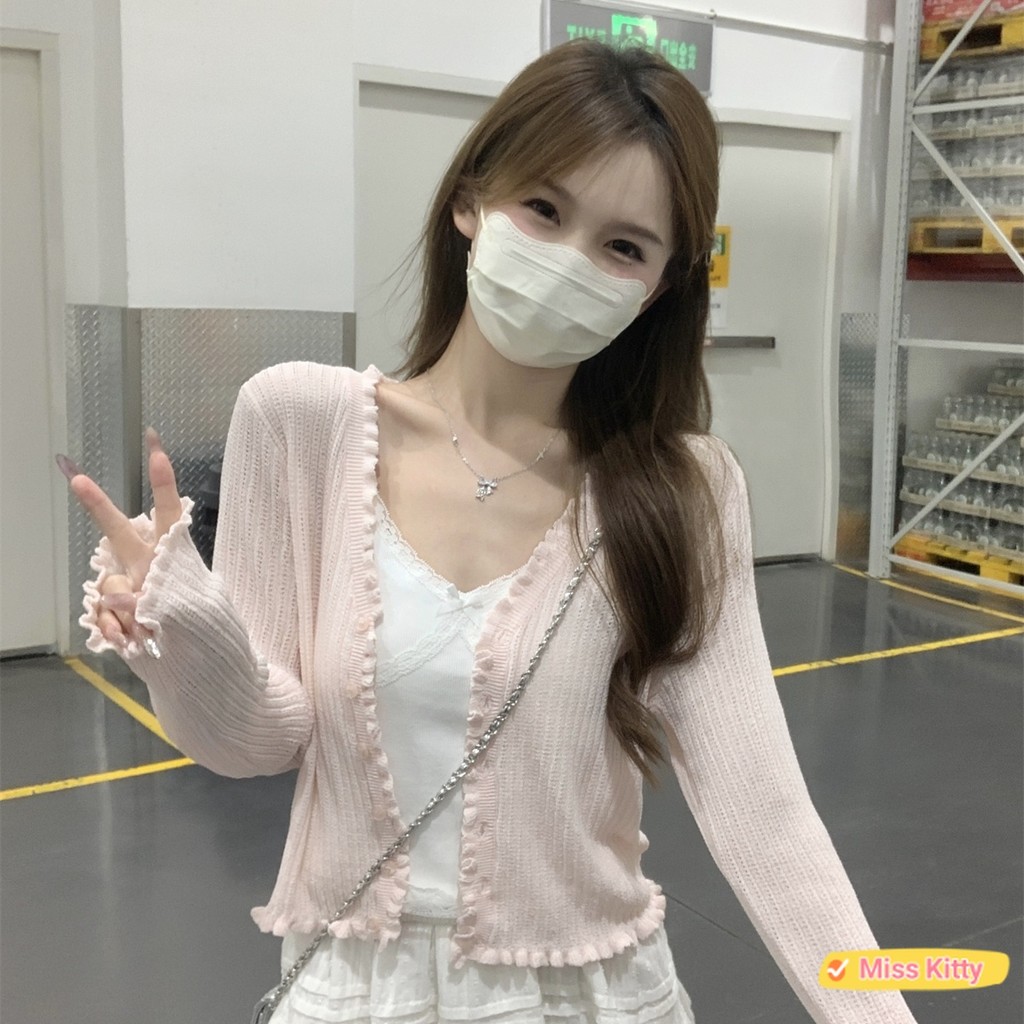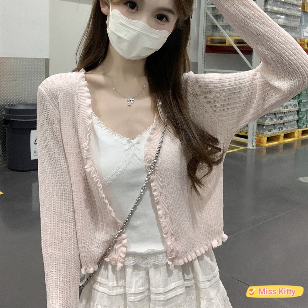 ?Miss Kitty❤️พร้อมส่ง เสื้อคลุมไหมพรม แขนยาว น่ารักๆ สีพาสเทลน่ารักมาก “W-L063”