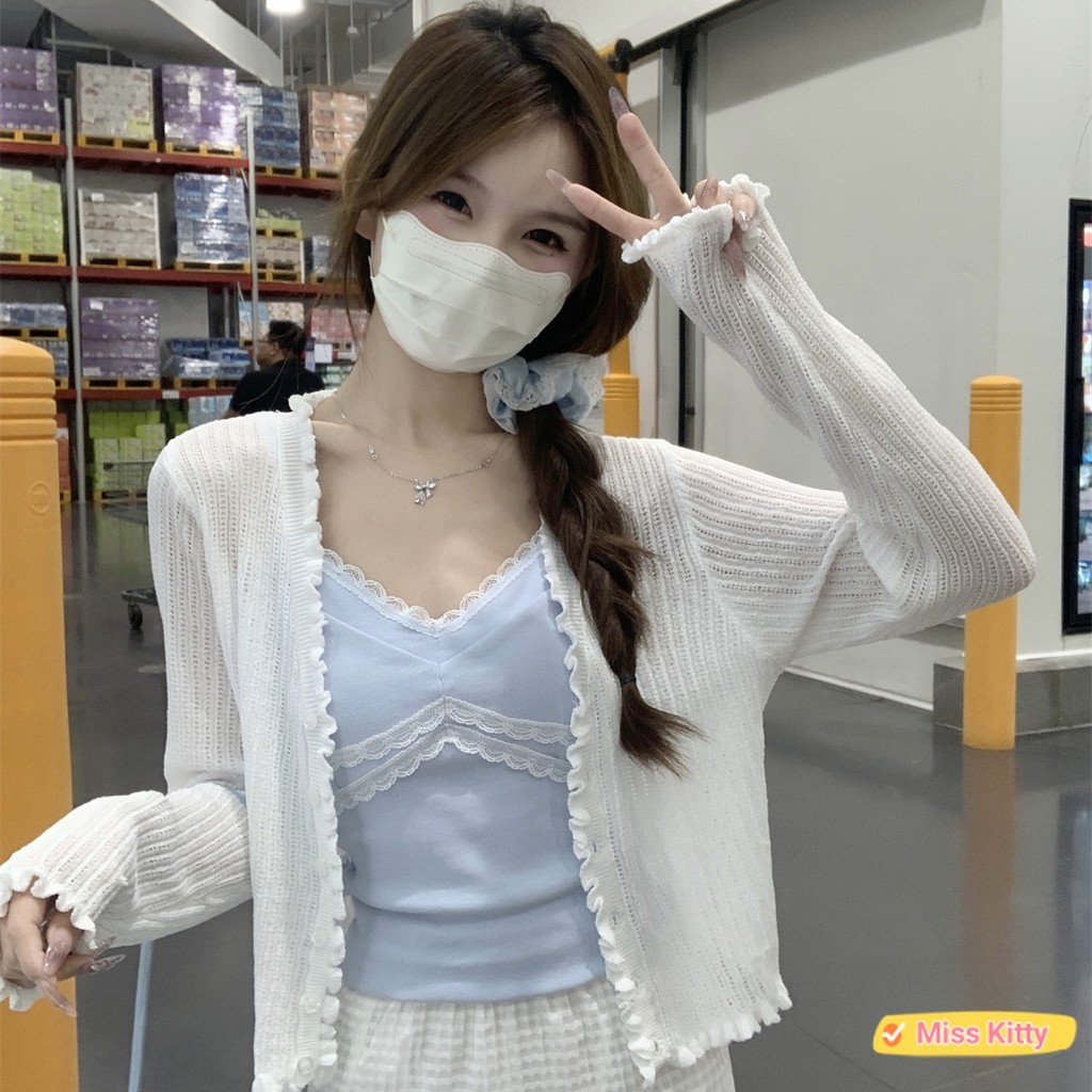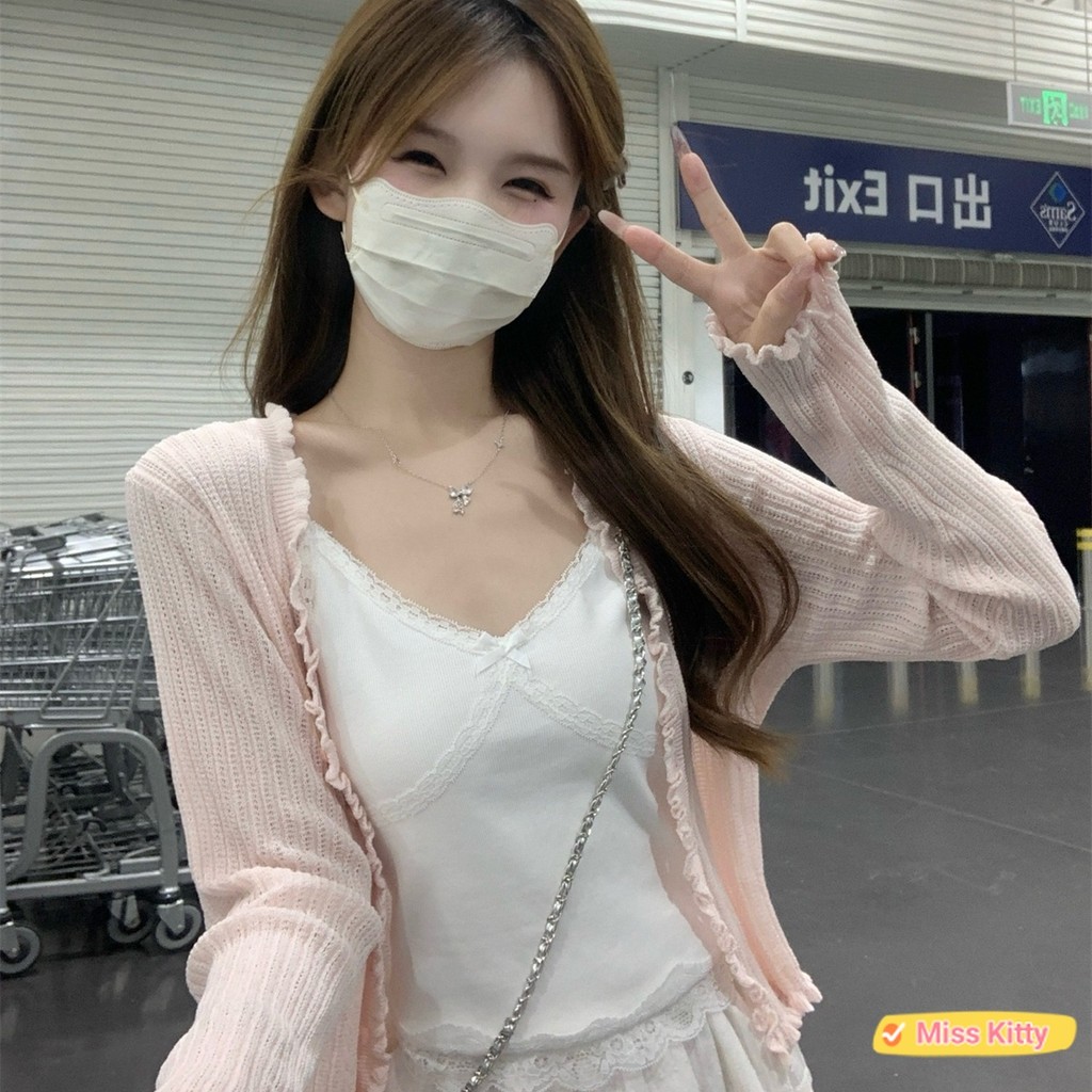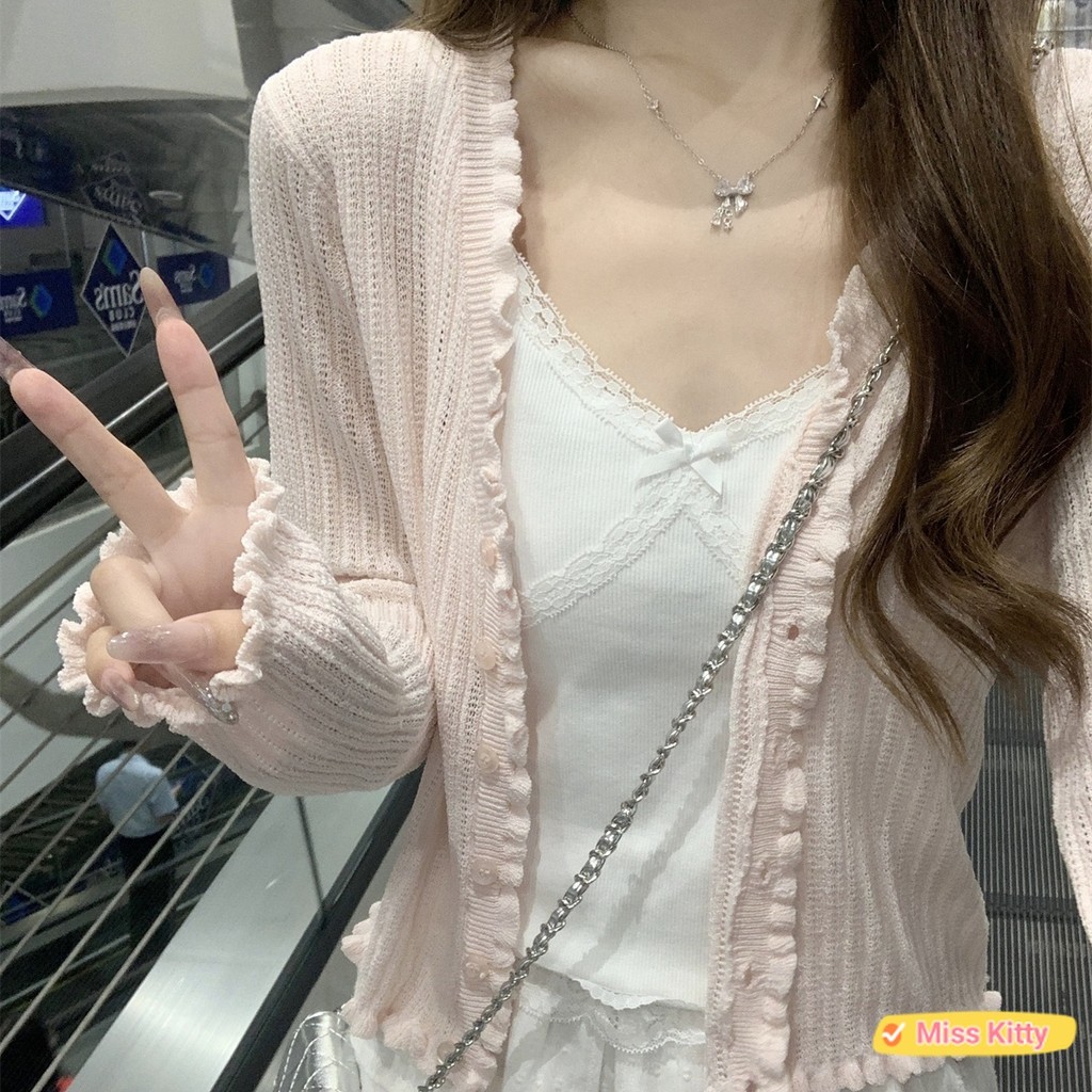 ?Miss Kitty❤️พร้อมส่ง เสื้อคลุมไหมพรม แขนยาว น่ารักๆ สีพาสเทลน่ารักมาก “W-L063”