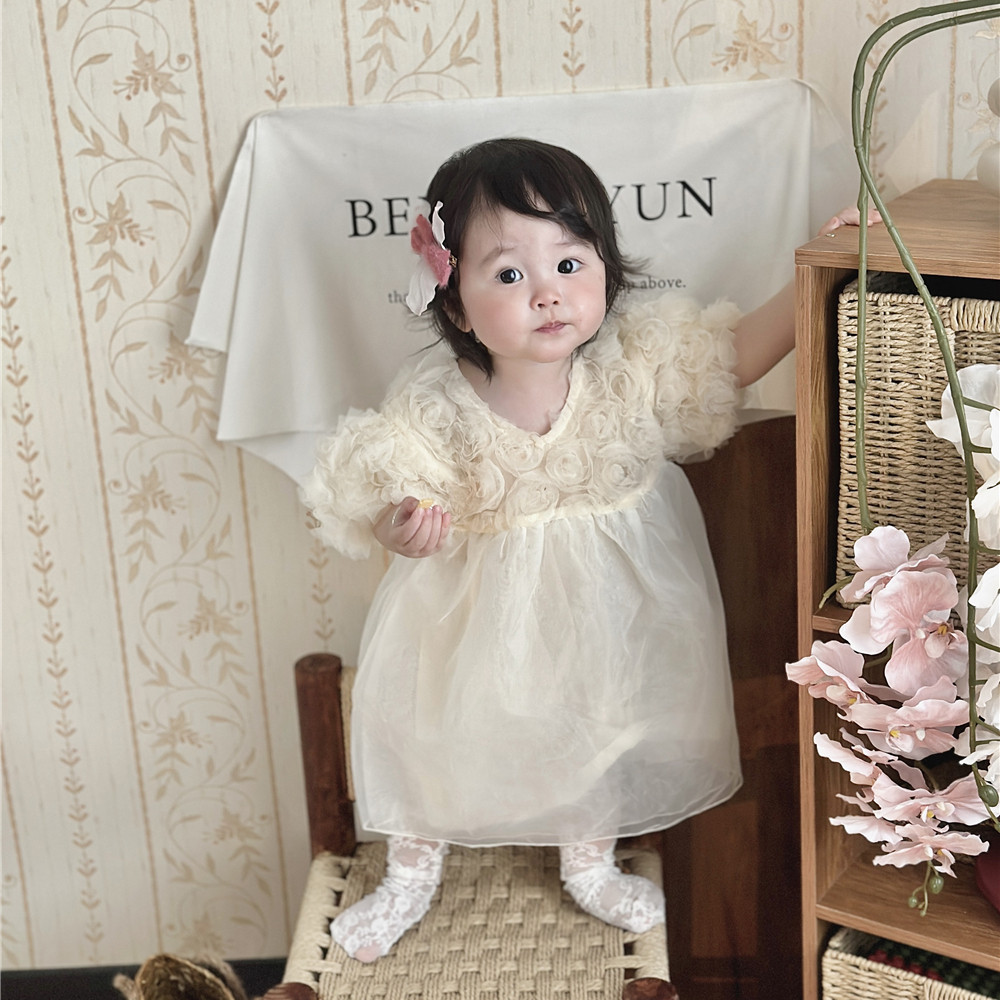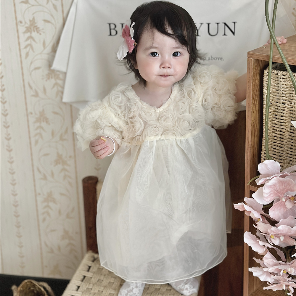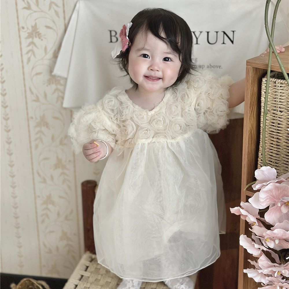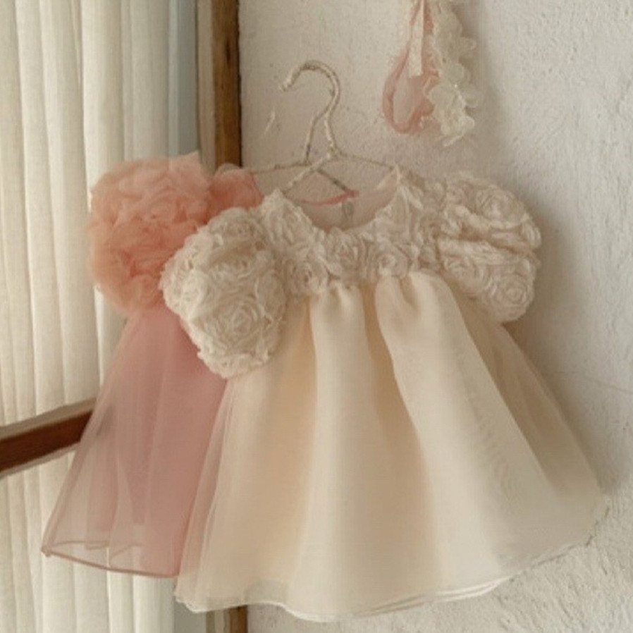 ฤดูร ้ อนเด ็ กสาว Rose Bubble Gauze Puffy Dress ชุดเจ ้ าหญิงชุดเด ็ กชุด