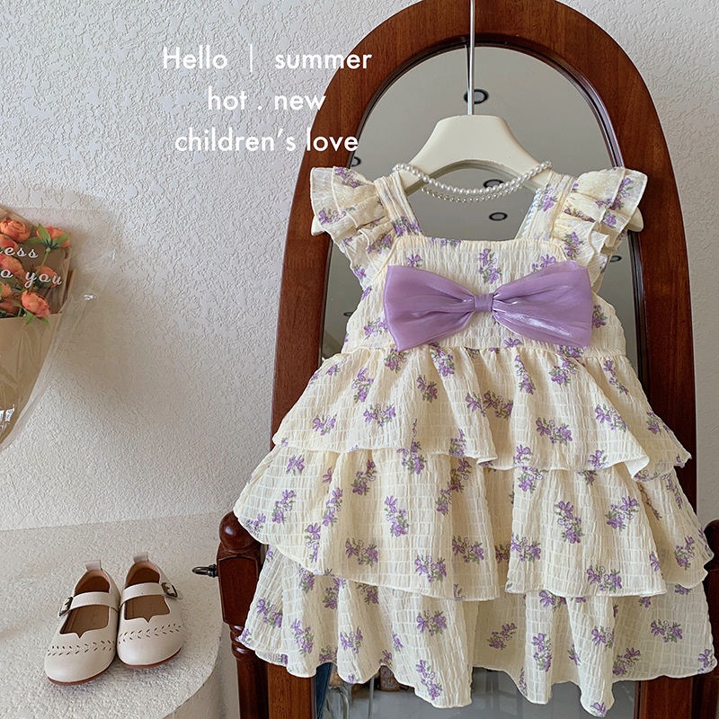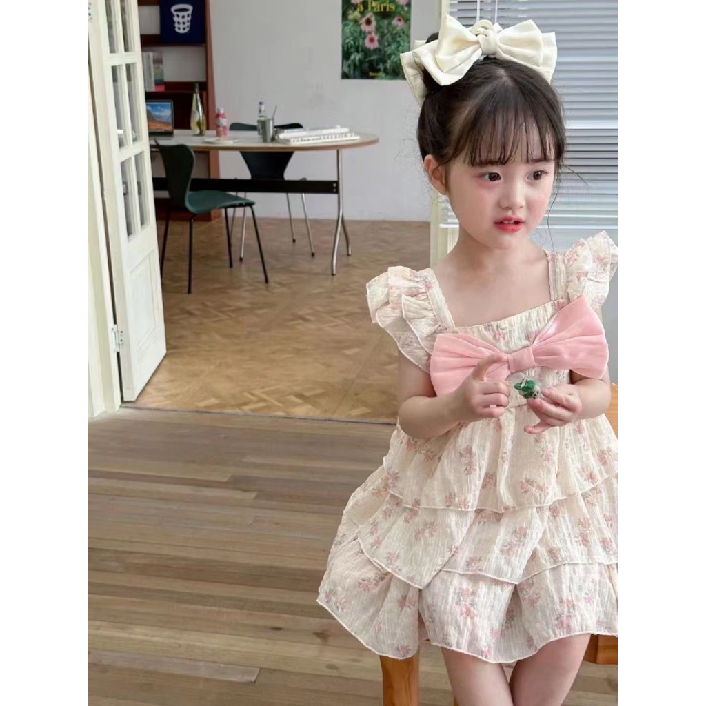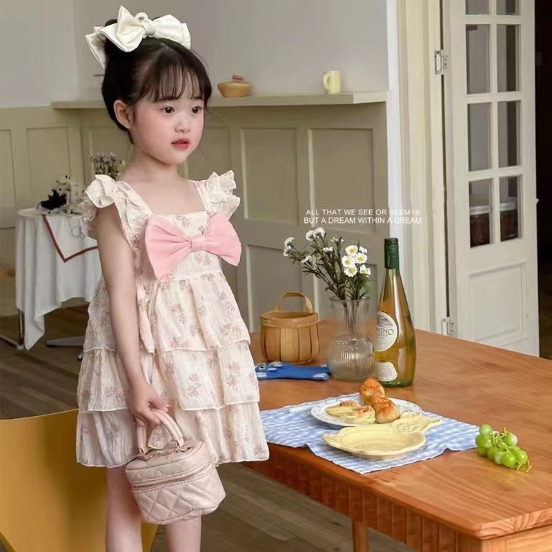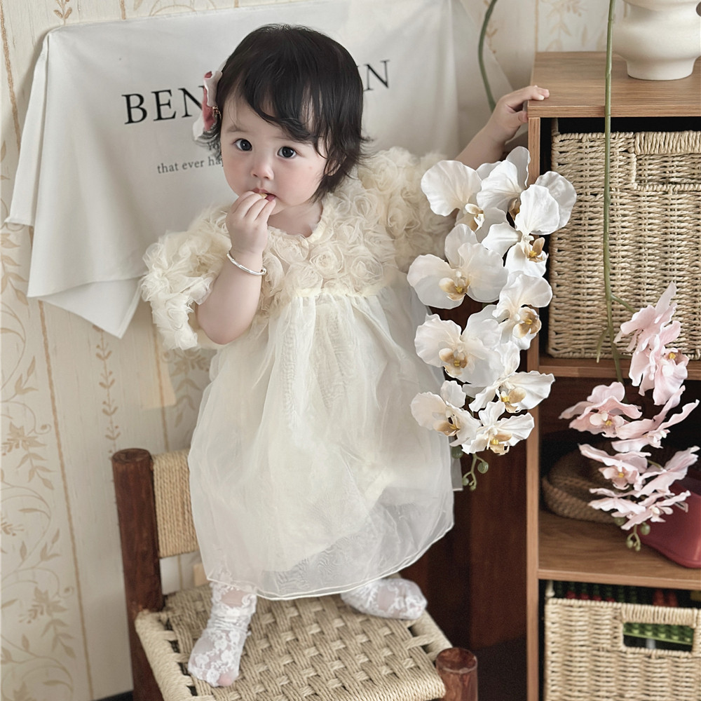 ฤดูร ้ อนเด ็ กสาว Rose Bubble Gauze Puffy Dress ชุดเจ ้ าหญิงชุดเด ็ กชุด