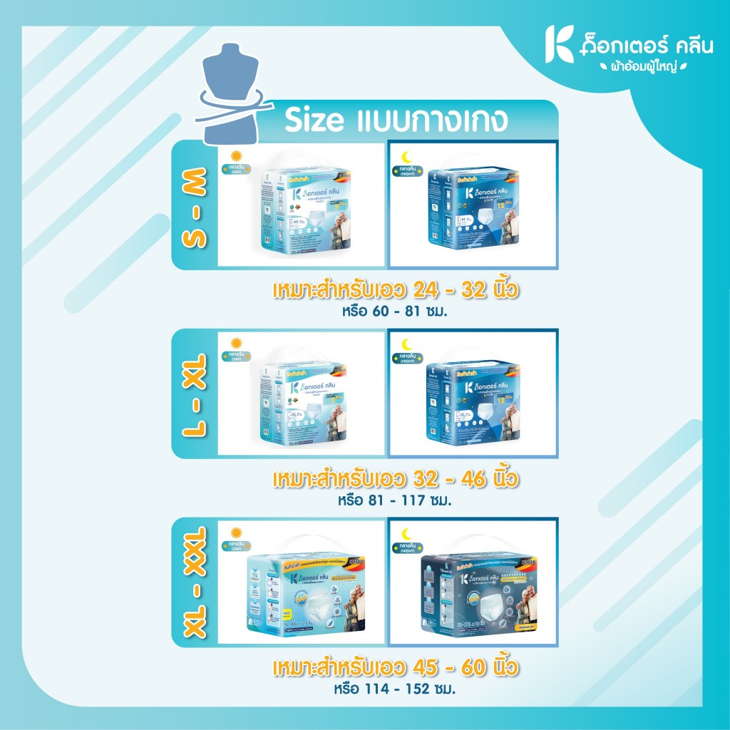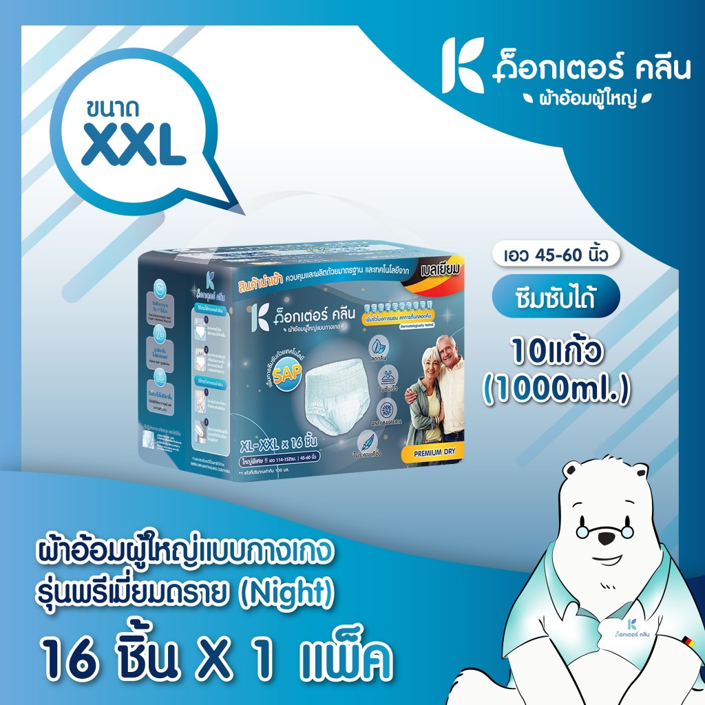 ข้อมูลทั่วไป ด็อกเตอร์ คลีน แบบ กางเกงกลางคืน ไซส์ XL-XXL