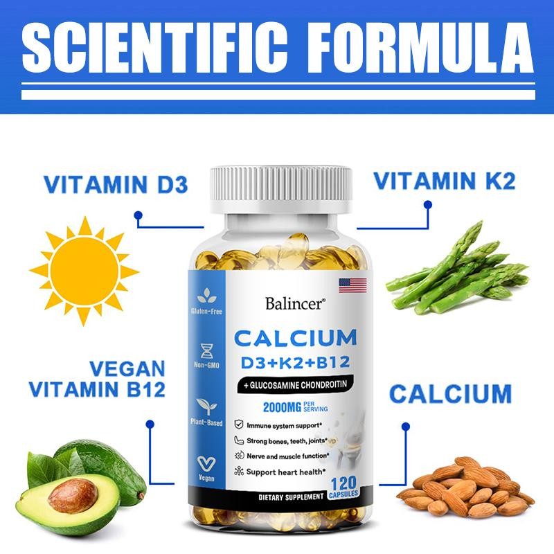 แคลเซียม คอมเพล็กซ์ วิตามิน D3+K2 +B12- รองรับกระดูกและกล้ามเนื้อเพื่อสุขภาพ อาหารเสริมดูแลข้อ