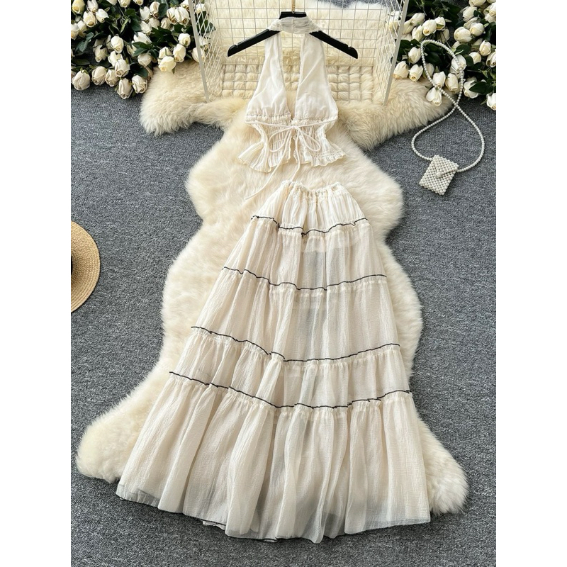 NEW SEXY BEACH SET ชุดเซ็ตเสื้อคล้องค้อ+กระโปรงยาว