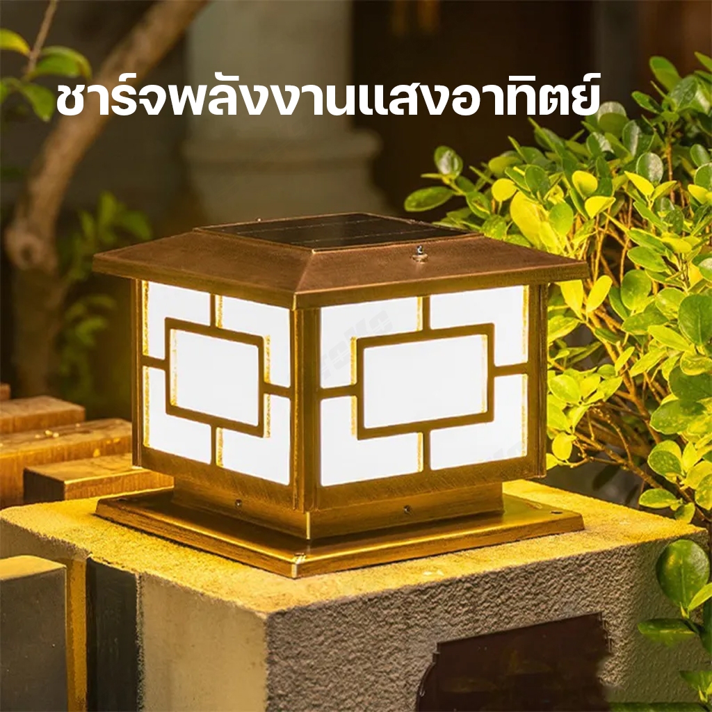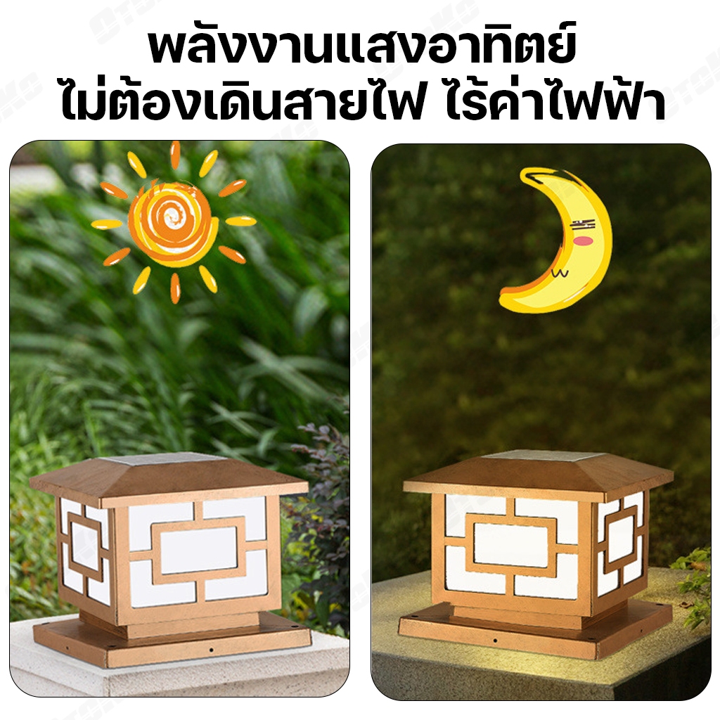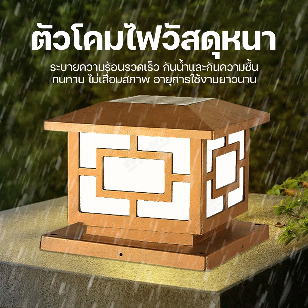 โคมไฟหัวเสาโซล่าเซลล์ 200W 300W 400W 500W กันน้ำ LED 2in1 ปรับได้2แสง แสงสีวอร์มไวท์ แสงสีขาว โคมไฟหัวเสา ไฟโซล่าเซลล์ พ