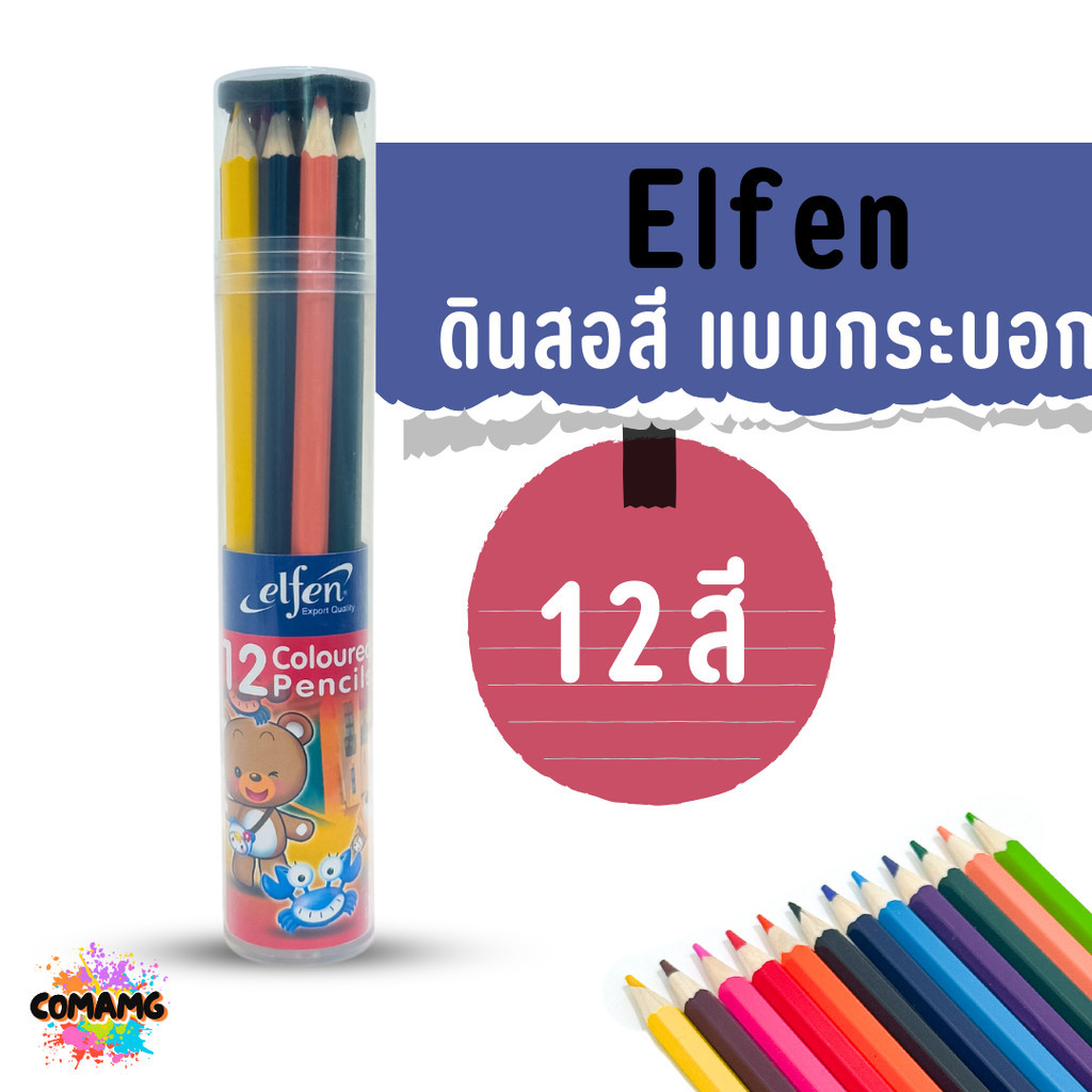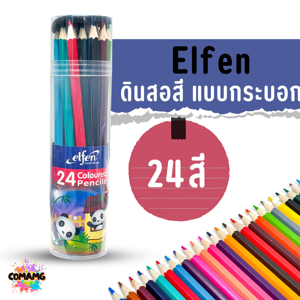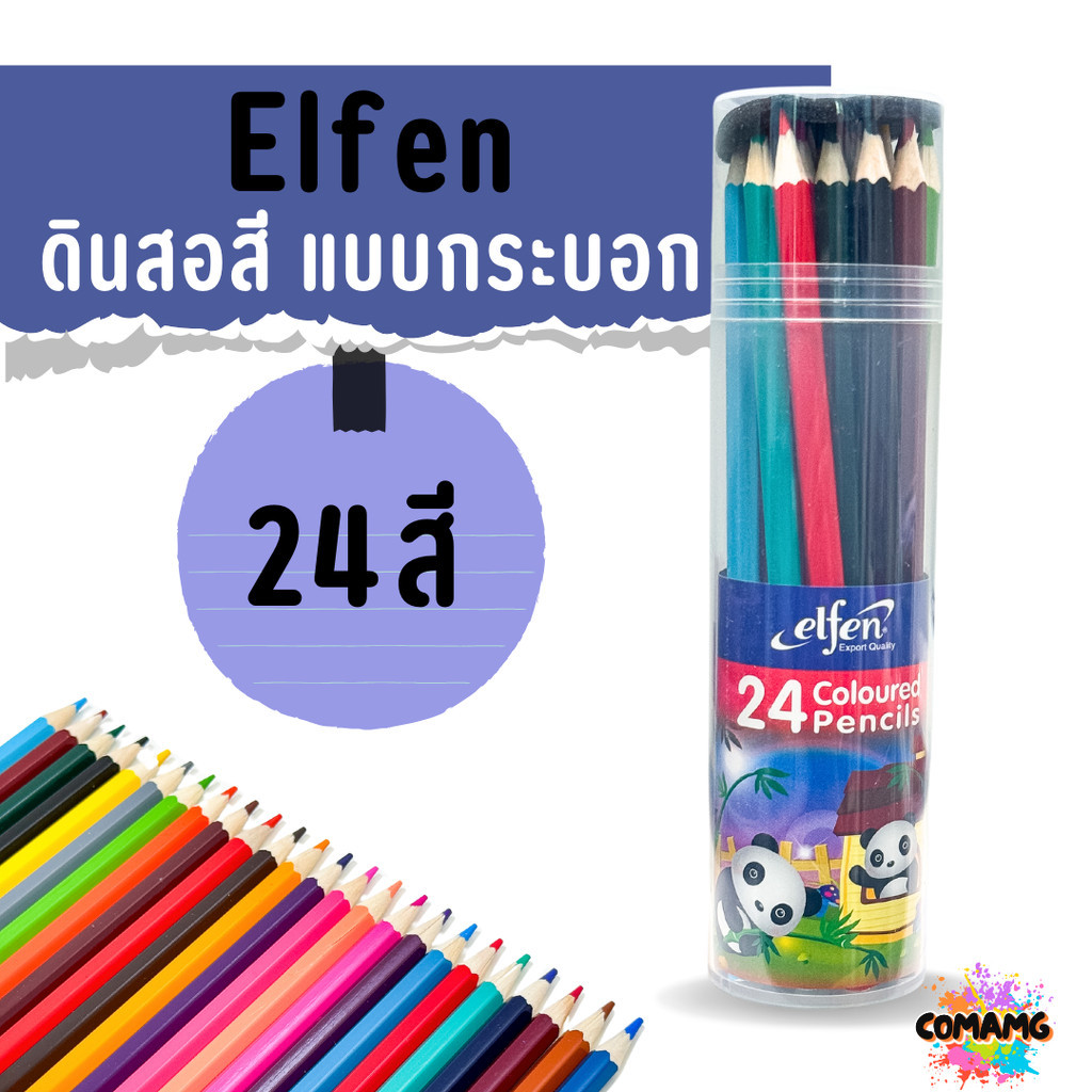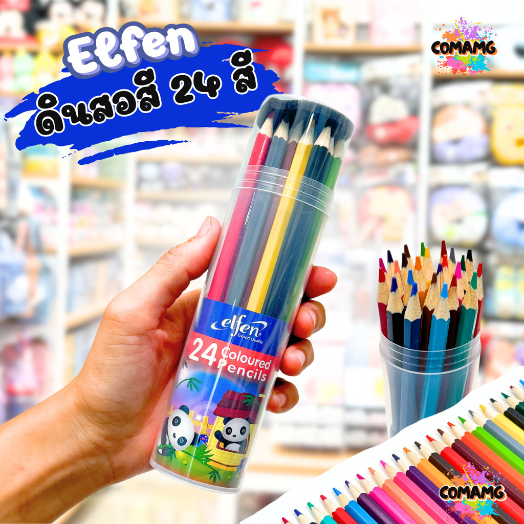 Elfen ดินสอสี สีไม้แท่งยาว แบบกระบอก ขนาด 12สี 24 สี พร้อมส่งค่ะ