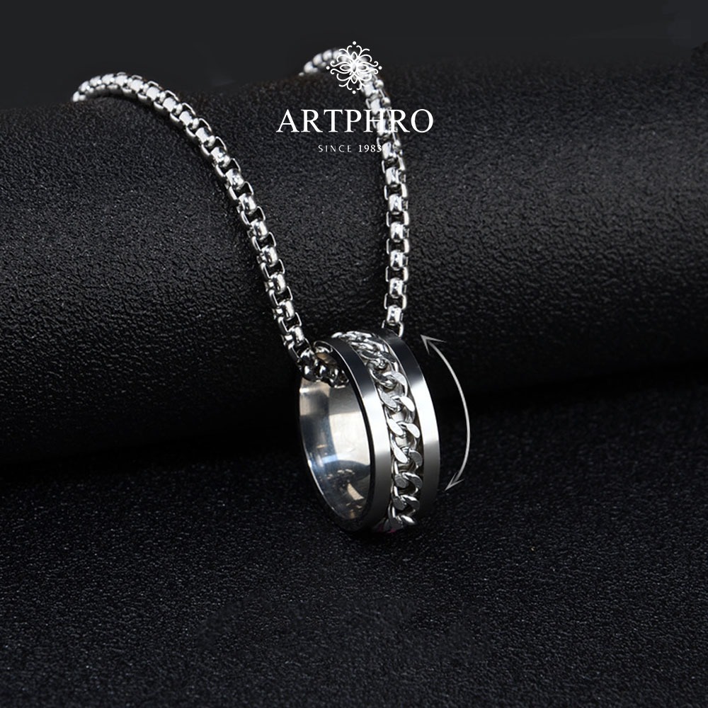Artphro จี ้ แหวนหมุนสร ้ อยคอเหล ็ กไทเทเนียมผู ้ ชายหมุนได ้ สําหรับผู ้ ชายไม ่ ทําให ้ มึนงง