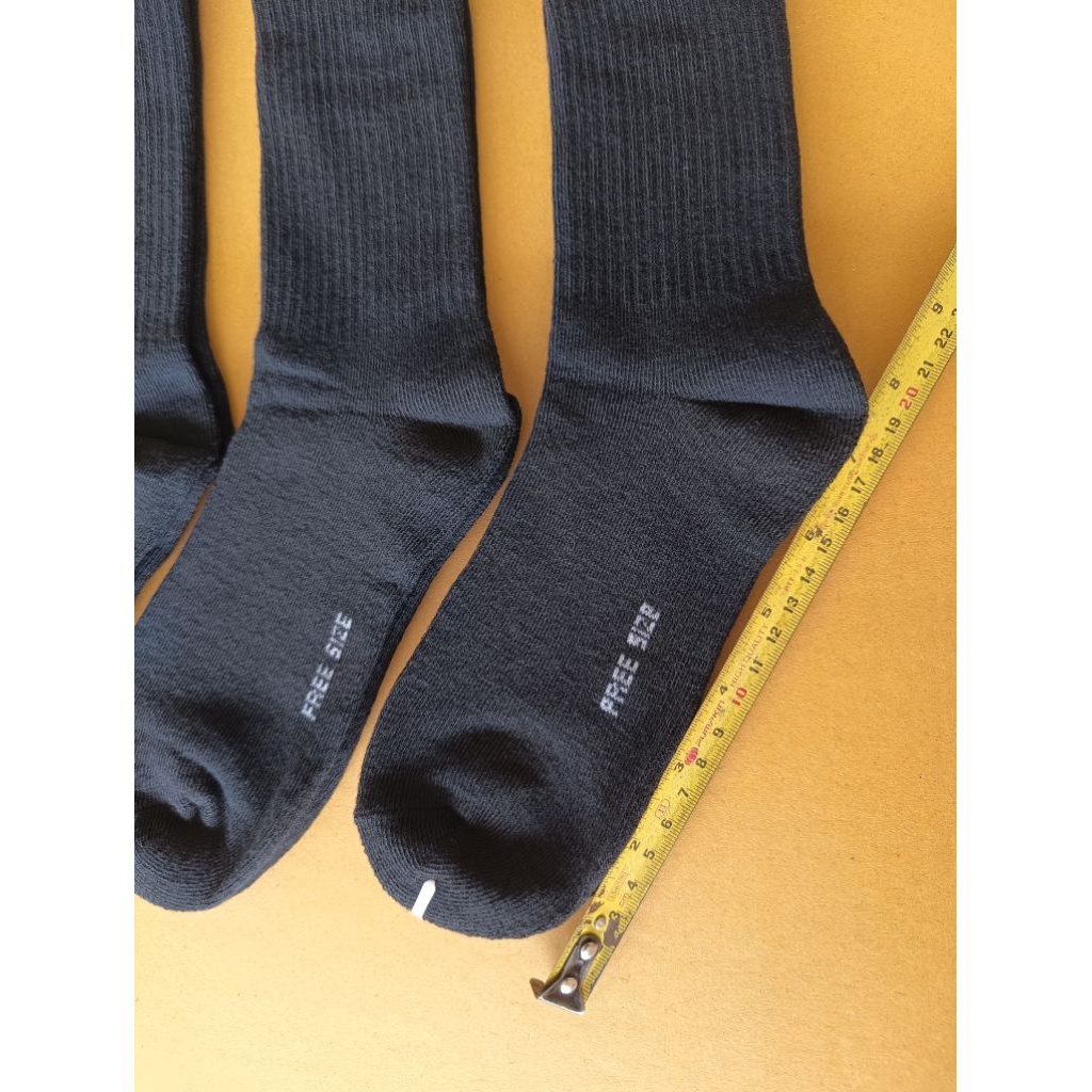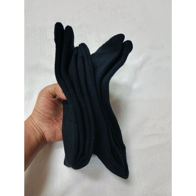 ถุงเท้ายาวครึ่งแข้ง 12 คู่ สีดำ พื้นธรรมดา เนื้อดีงานไทย