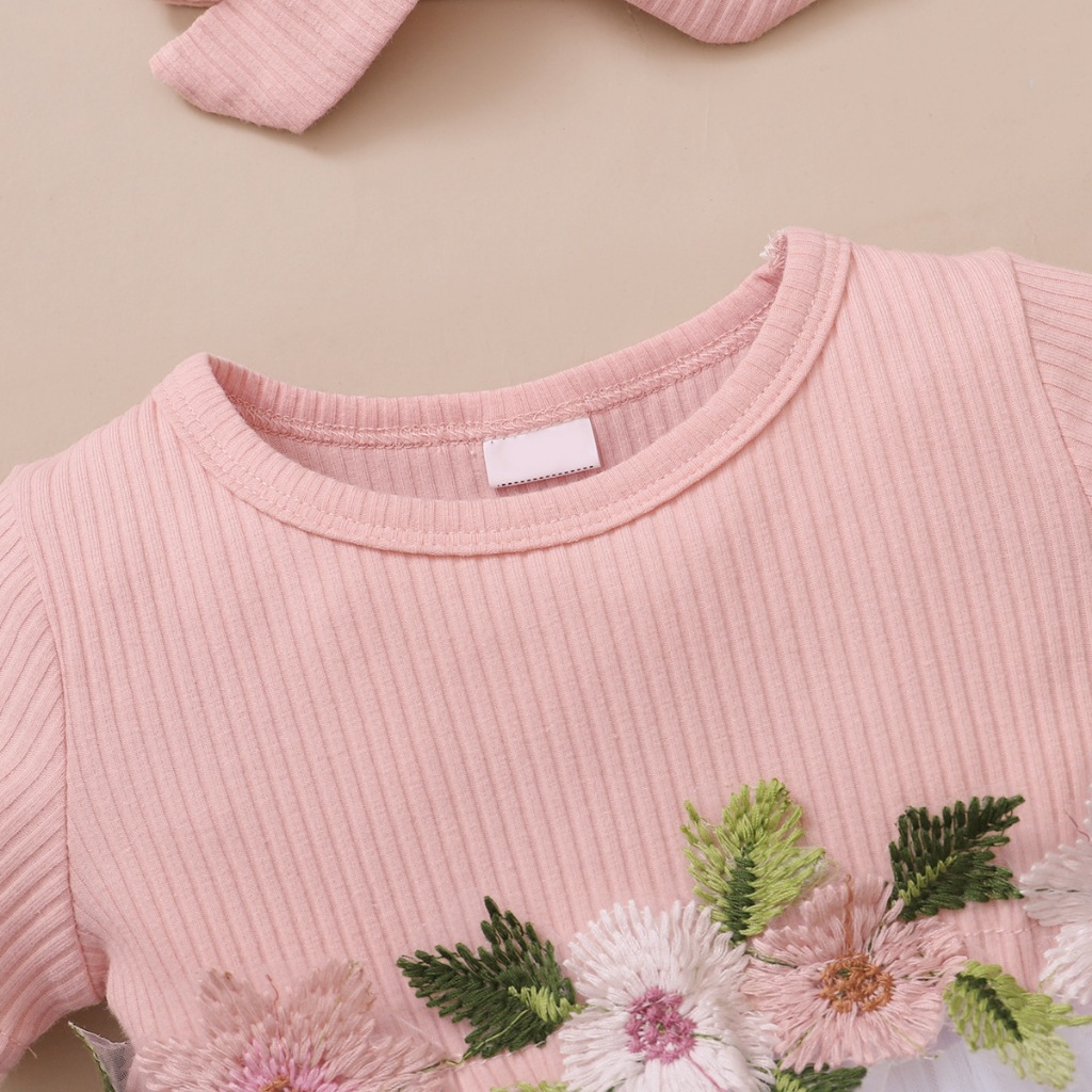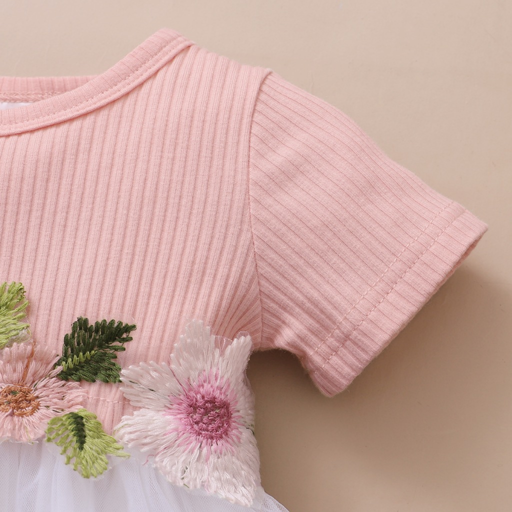 (0-3 ปีเด็กสาวชุดเจ้าหญิง) ฤดูร้อนใหม่ดอกไม้ขนาดเล็กเย็บปักถักร้อยเด็กเสื้อผ้าแขนสั้น