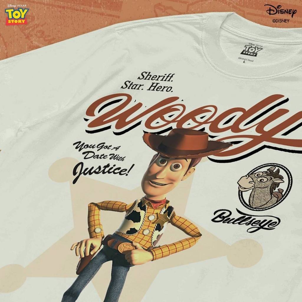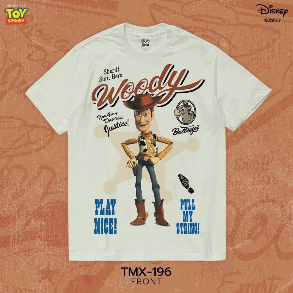 Power 7 Shop เสื้อยืดการ์ตูน ลาย “วู้ดดี้” จาก “Toy Story” ลิขสิทธิ์แท้ DISNEY (TMX-196-สีครีมอ่อน)