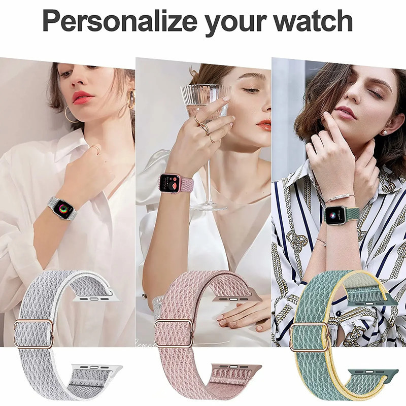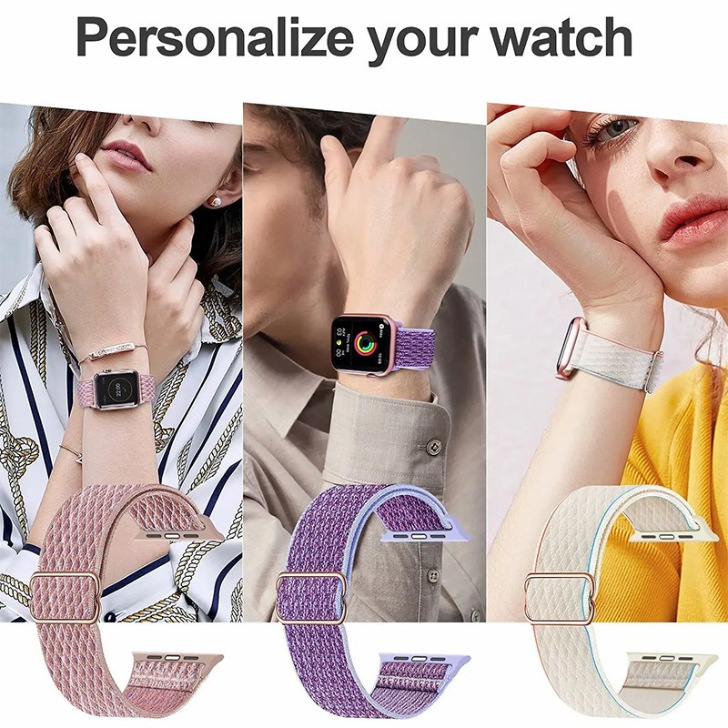 ไนล่อนยืดหยุ่นกีฬาสายคล้องคออุปกรณ์เสริม for Apple Watch Ultra 3 2 Series 11 10 9 8 7 6 5 Iwatch 49 46 45 44 42 41 40 มม