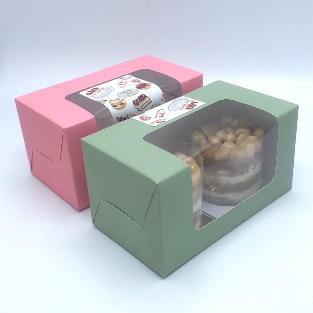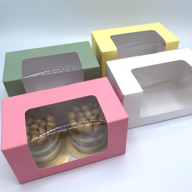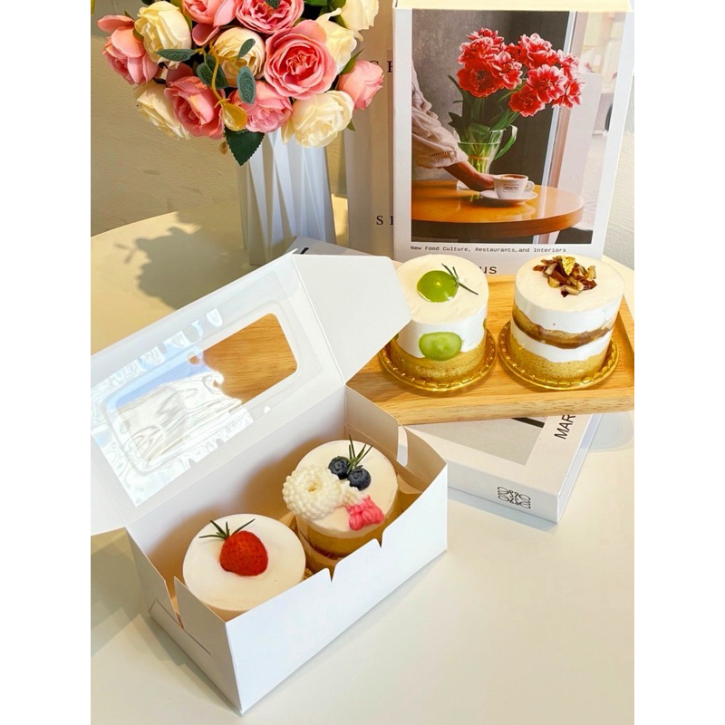 กล่องเค้กชิ้น สำหรับ 2 ชิ้น ขนาด 9*16*8.5 ซม (20ชิ้น/แพ็ค) หน้าต่างยู กล่องขนม ขนม กล่องเบเกอรี่ ฟู้ดเกรด