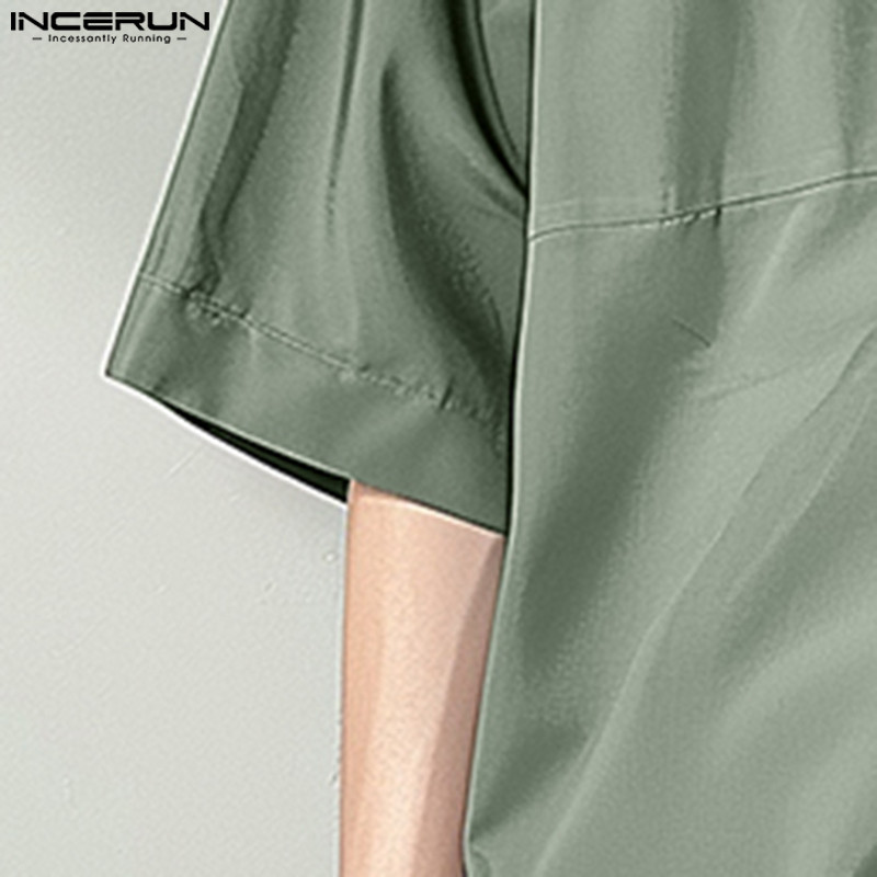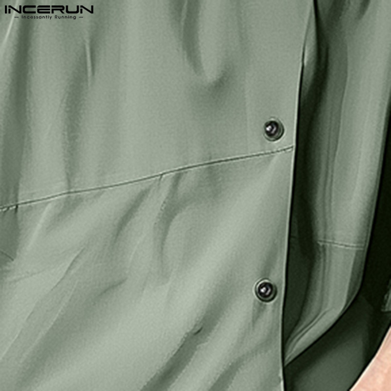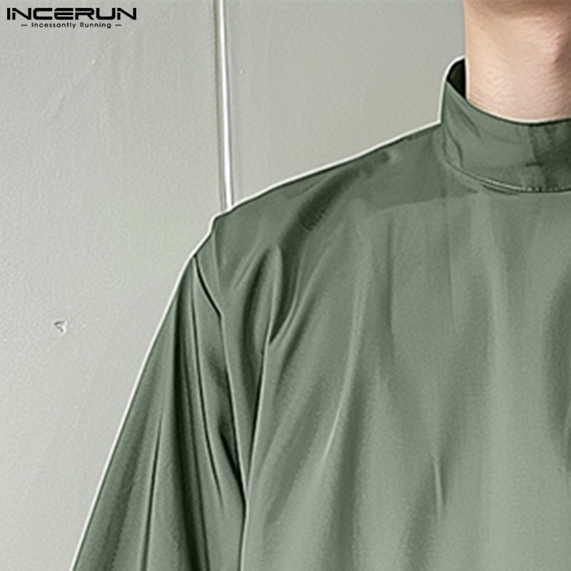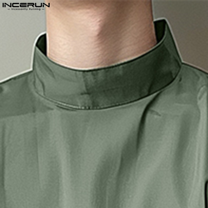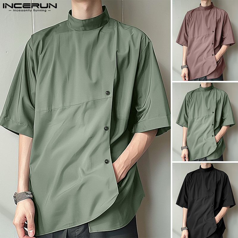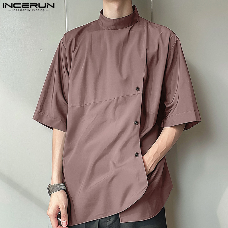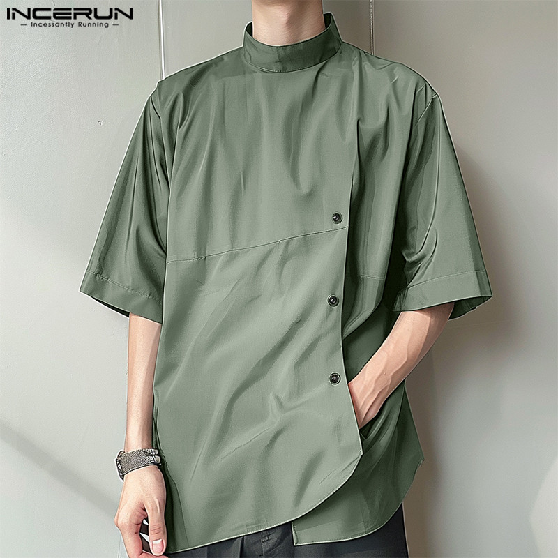 ไม่แน่นอน ผู้ชายแฟชั่นเกาหลีคอตั้งแนวทแยง สาบ ครึ่งแขนเสื้อ