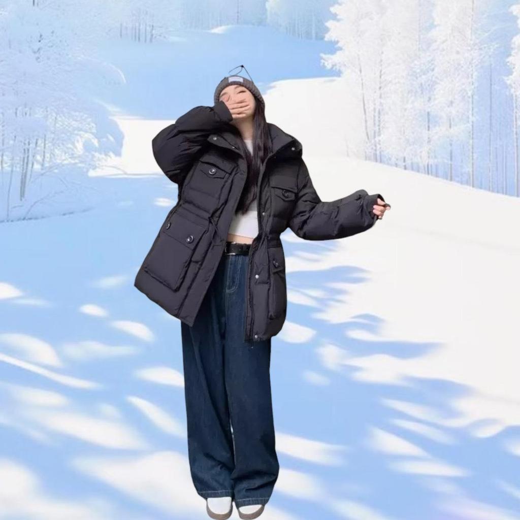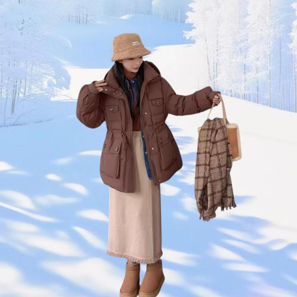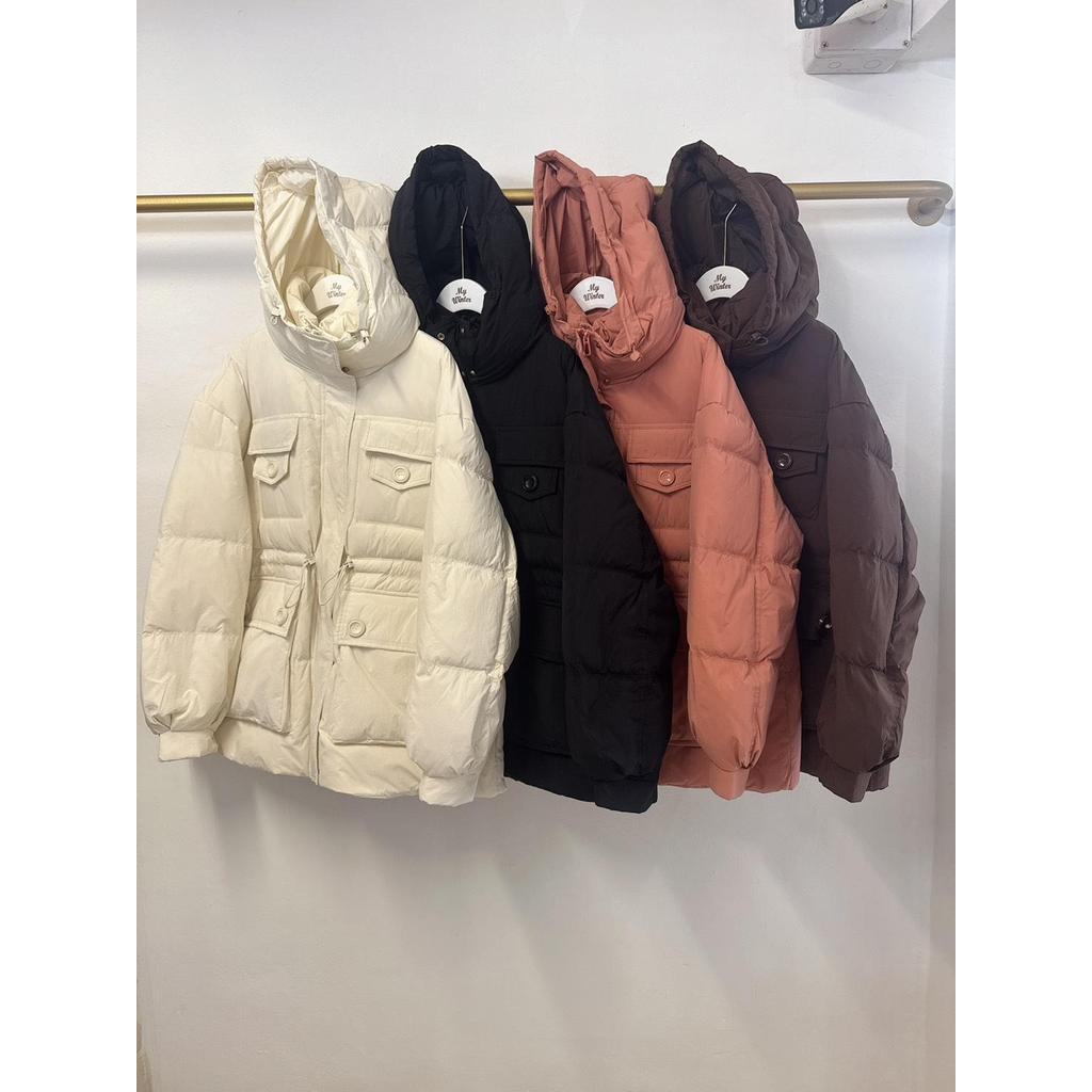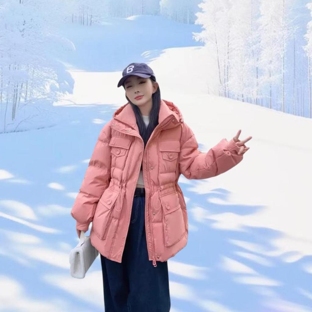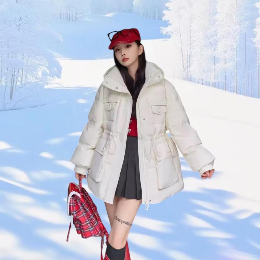 เสื้อแจ็คเก็ตกันหนาวบุนวม ผ้าไนลอน รุ่นโอเวอร์ไซส์ ไหล่สโลป ปกปิดส่วนบนสำหรับสาวอวบได้ดี ซ่อนซิปด้านหน้าสวมใส่ง่าย ดีไซน์หมวกฮู้ดเสริมเชือกหูรูดด้านในน่ารักๆ แบบเรียบจับแมตช์ได้ทุกชุด ผ้ากันฝนและหิมะได้ดี