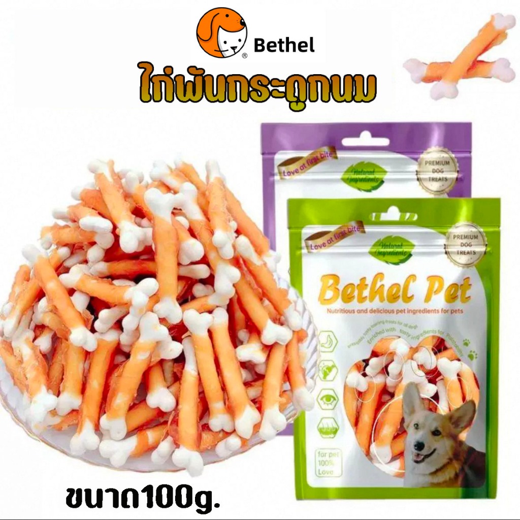 Bethel ขนมขัดฟันสัตว์เลี้ยง ขนมหมา ขนมแมว น่องไก่ อบแห้ง ส่วนผสมจากไก่ นม หอมอร่อย แท่งขัดฟัน ขนาด100กรัม