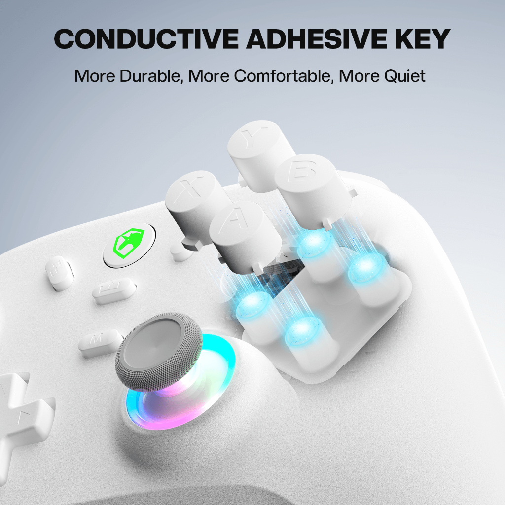ECHTPower Wireless PC Gaming Controller - จอยสติ๊กเอฟเฟกต์ห้องโถง, อัตราการสำรวจ 1000Hz, แบตเตอรี่ 800mAh, ไฟ RGB, เทอร์โบและการสั่น